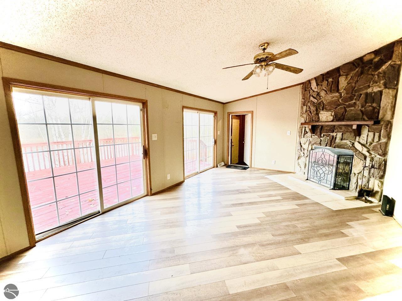 This waterfront home sits on a 1/2-acre parcel in Hiawatha Shores with 125 feet of frontage on Lake Gitchegumee. With plenty of room to play in the yard, have a garden, or enjoy a campfire. The large deck overlooking the Lake is scenic and serene. This 3-bedroom, 2-full-bath home has a separate primary suite with a sunken tub and walk-in closet. The home has cathedral ceilings, an open kitchen, and two spacious living areas. The 2-car garage has lots of storage space. The laundry room with a washer and dryer extends onto the back deck. A natural fireplace and a wood stove triple the heating sources. This oasis offers privacy, yet you're close to the village. Up to 2 pets are accepted. The security deposit is equal to one month's rent. A $250 non-refundable pet fee is required for each pet. All potential tenants must complete the Rentspree link with a $40 non-refundable fee to screen background and credit check to be considered.