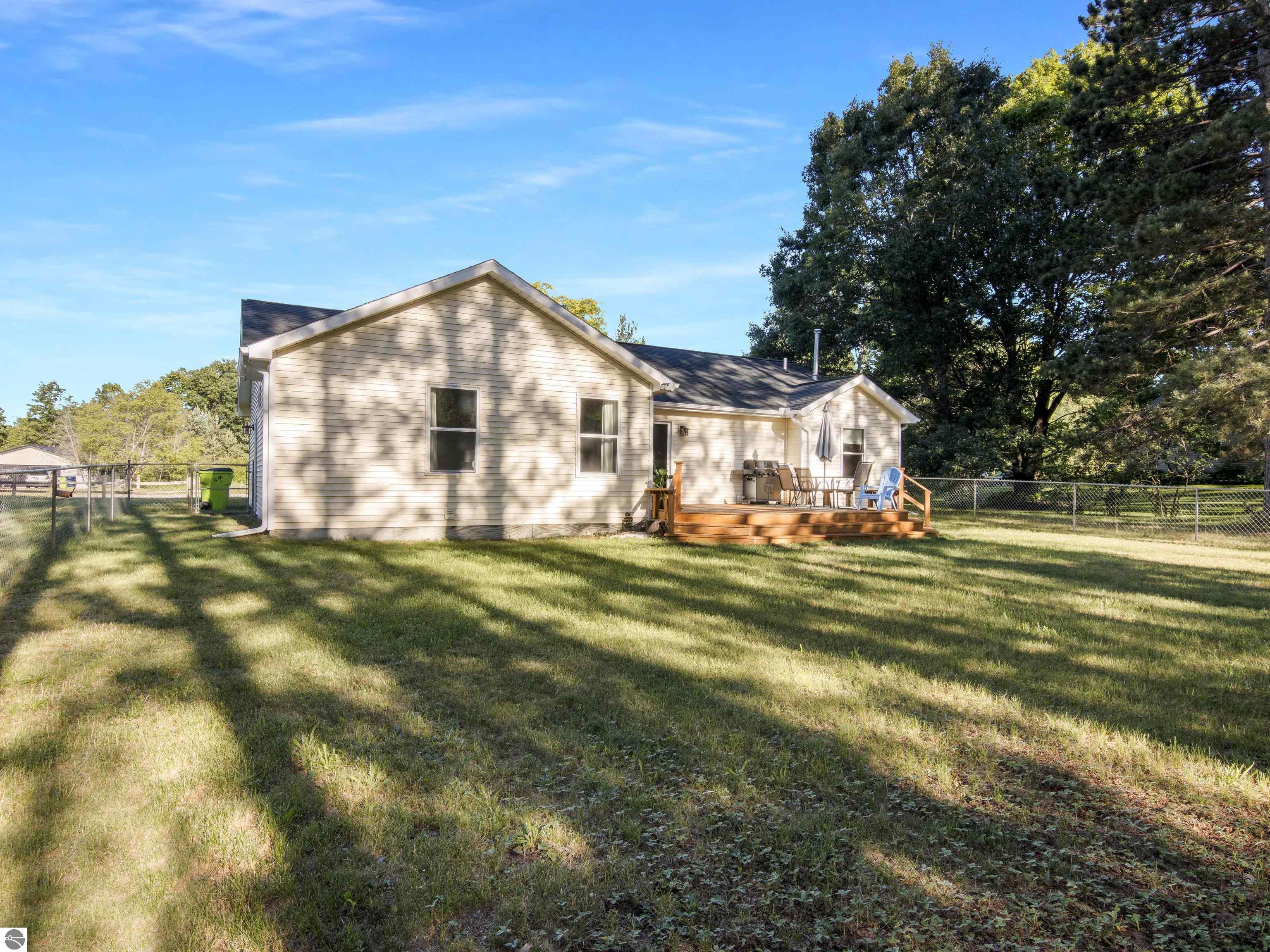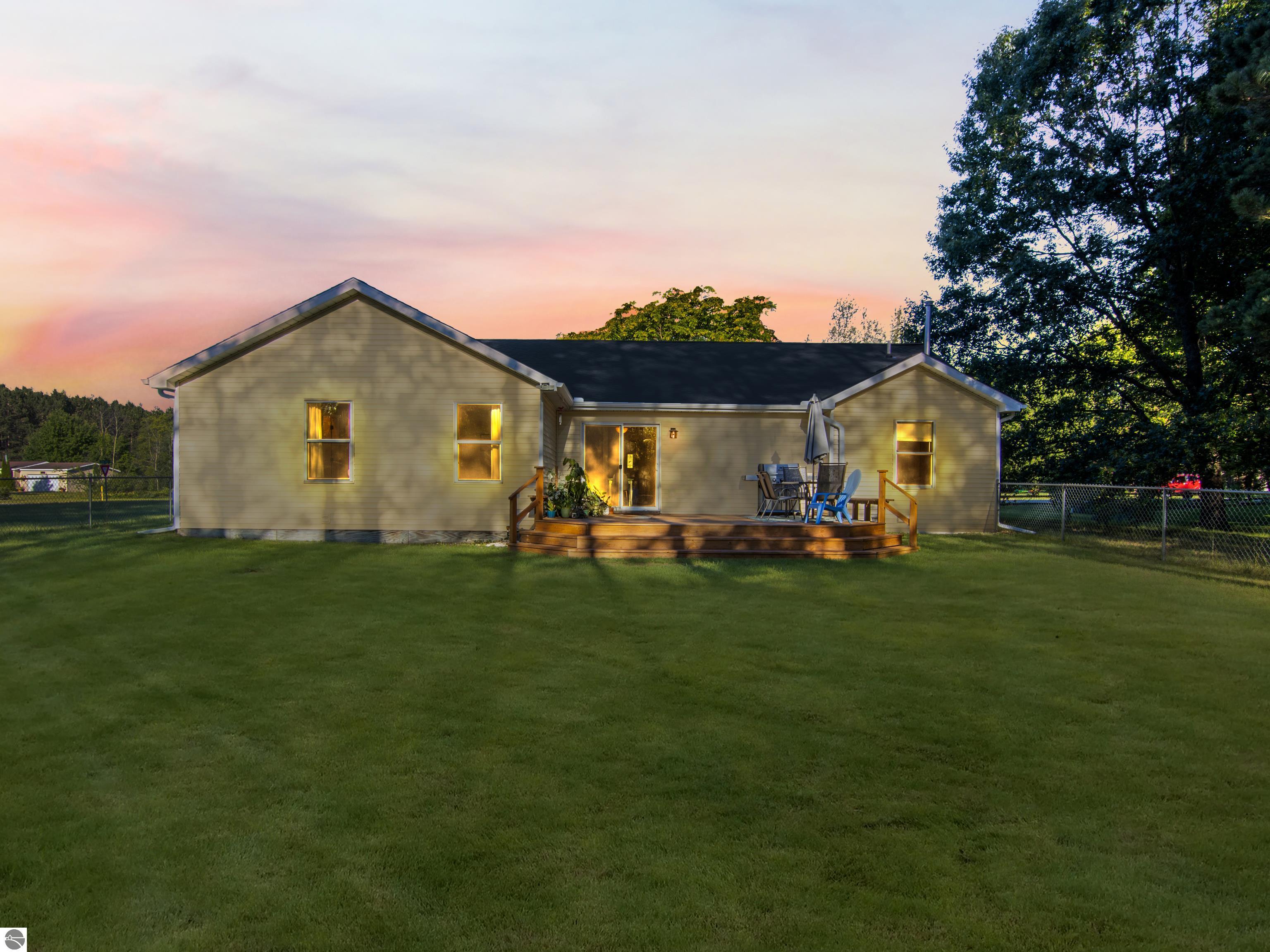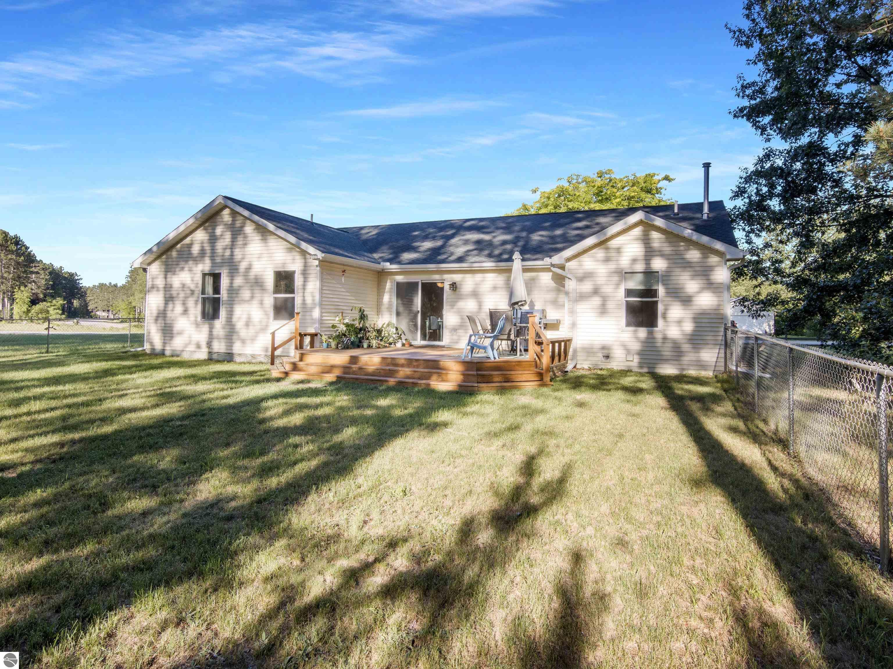 This meticulously maintained 3-bedroom, 2-bathroom ranch home sits on a generous 1+ acre lot. It features an attached two-car garage and a fully fenced backyard perfect for little ones and furry friends. The covered composite porch is easy to maintain and ideal for unwinding in the evening with sunset views. Inside, the home boasts an inviting open floor plan with vaulted ceilings and laminate flooring. The spacious kitchen offers ample cabinet space, great countertops, and stainless-steel appliances. It seamlessly flows into the dining room, which has direct access to a large back deck overlooking serene woods, which is the perfect spot to watch the sunrise with your morning coffee. The primary suite at one end of the home includes a substantial walk-in closet and a recently updated private bath. Two additional bedrooms are positioned at the opposite end of the house and share a second well-appointed bathroom. A full basement is roughed-in and features an egress window, providing ample opportunity for additional living space or could serve as another bedroom. There is plenty of room left for storage if the space is reimagined. A convenient garden shed offers extra room for your belongings, keeping your garage uncluttered. The home also includes a new roof, ensuring peace of mind for years. It's the perfect blend of comfort, convenience, and tranquility.