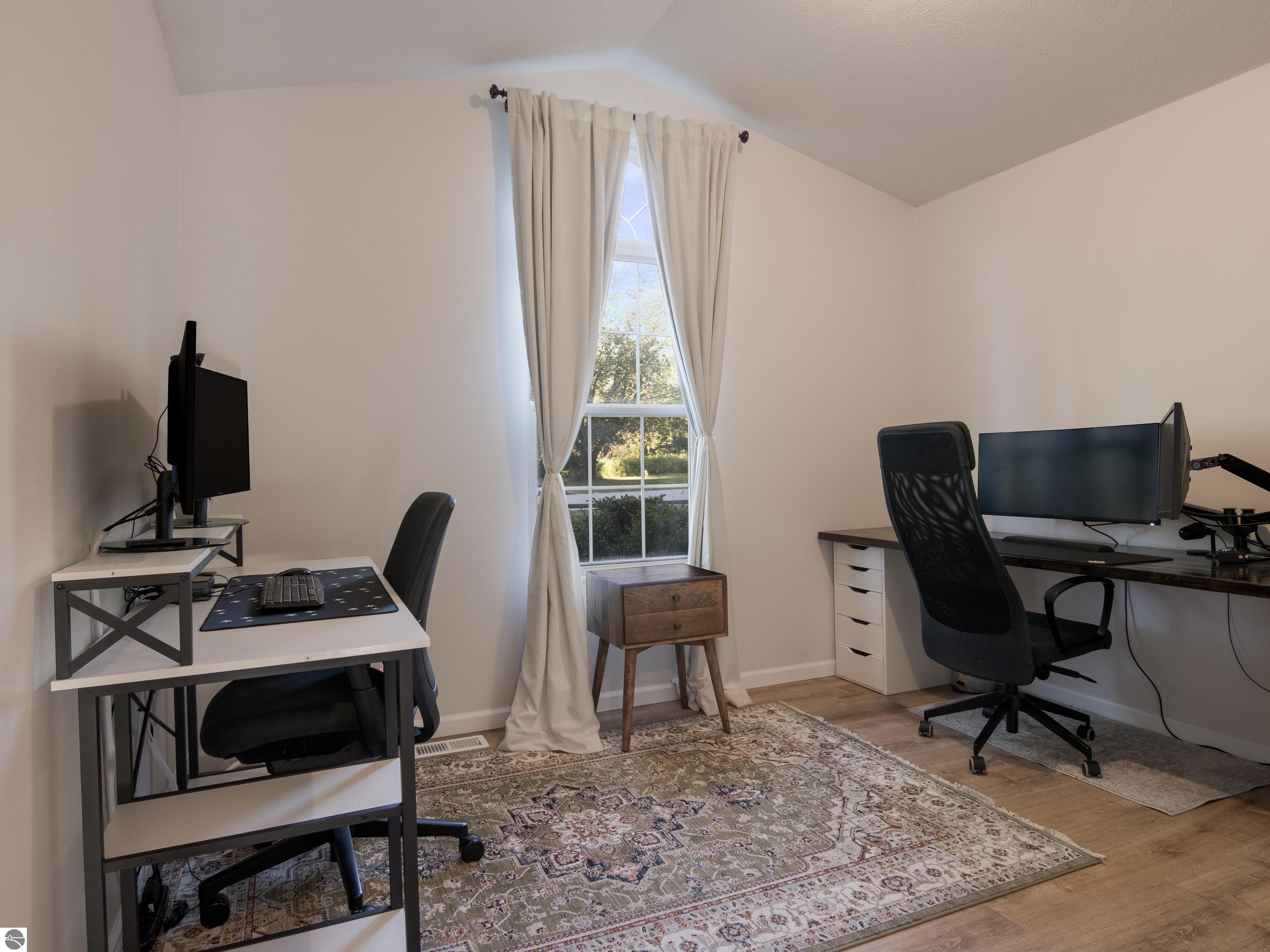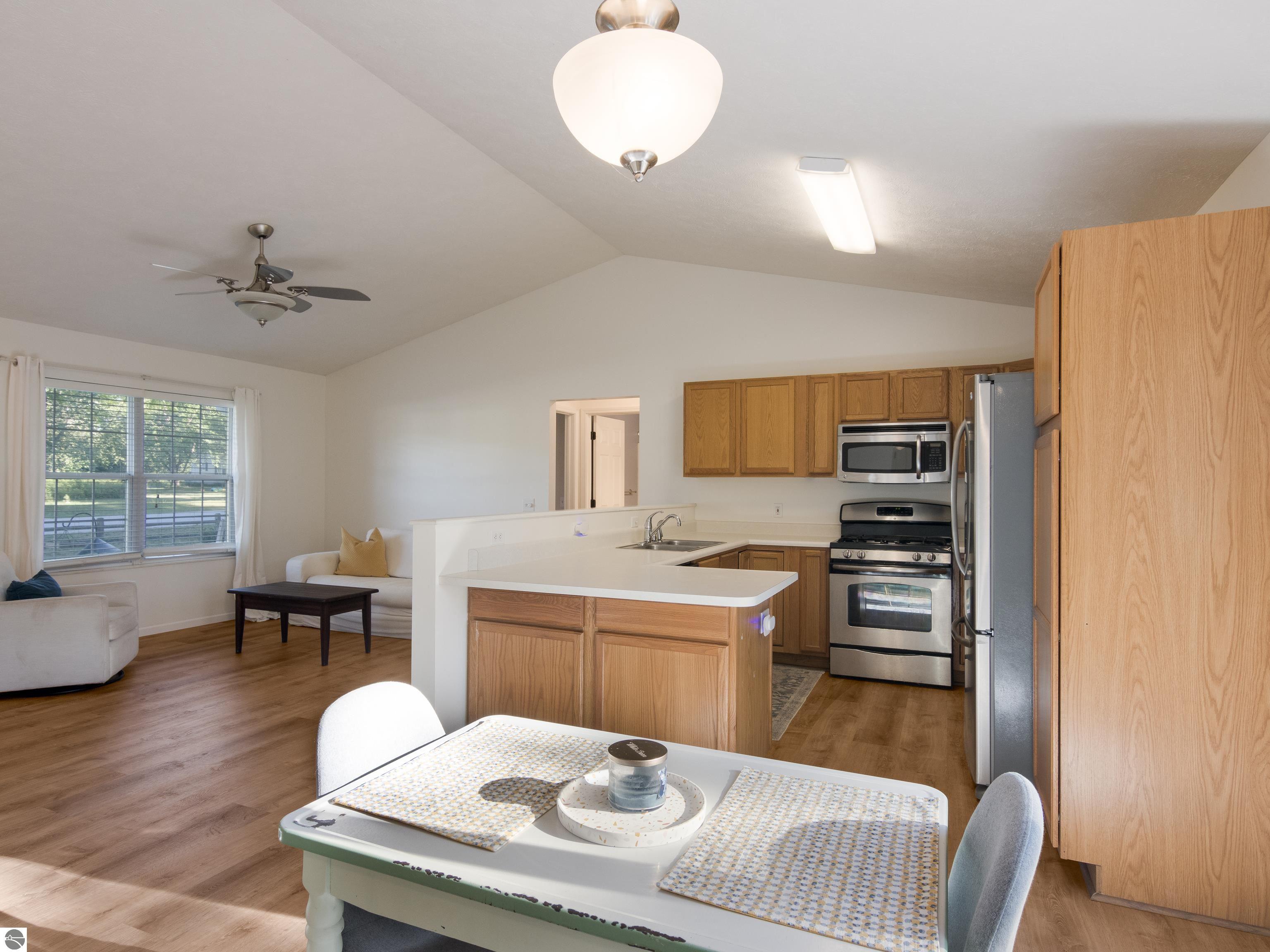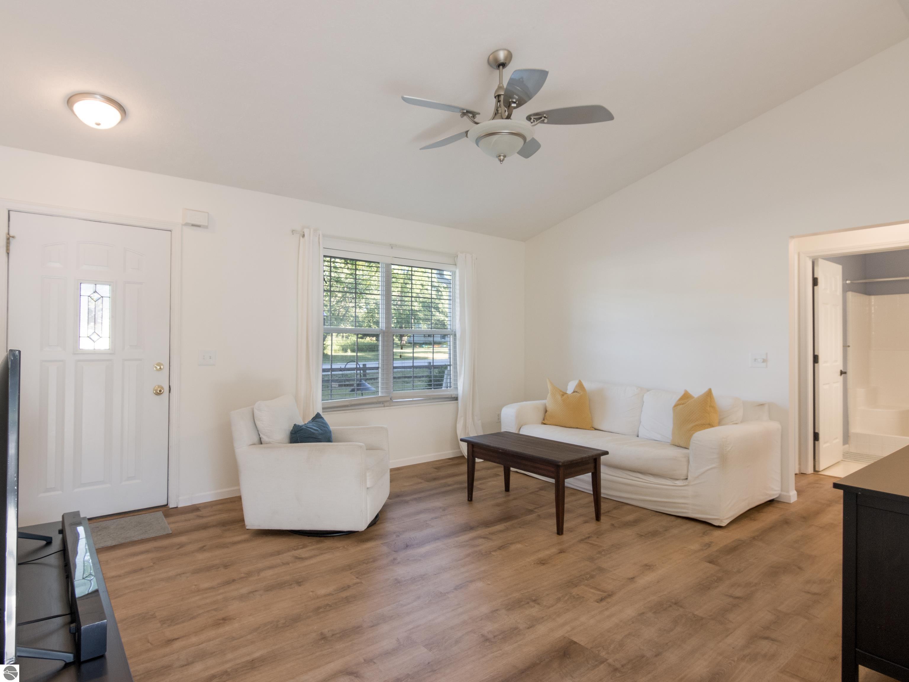 This meticulously maintained 3-bedroom, 2-bathroom ranch home sits on a generous 1+ acre lot. It features an attached two-car garage and a fully fenced backyard perfect for little ones and furry friends. The covered composite porch is easy to maintain and ideal for unwinding in the evening with sunset views. Inside, the home boasts an inviting open floor plan with vaulted ceilings and laminate flooring. The spacious kitchen offers ample cabinet space, great countertops, and stainless-steel appliances. It seamlessly flows into the dining room, which has direct access to a large back deck overlooking serene woods, which is the perfect spot to watch the sunrise with your morning coffee. The primary suite at one end of the home includes a substantial walk-in closet and a recently updated private bath. Two additional bedrooms are positioned at the opposite end of the house and share a second well-appointed bathroom. A full basement is roughed-in and features an egress window, providing ample opportunity for additional living space or could serve as another bedroom. There is plenty of room left for storage if the space is reimagined. A convenient garden shed offers extra room for your belongings, keeping your garage uncluttered. The home also includes a new roof, ensuring peace of mind for years. It's the perfect blend of comfort, convenience, and tranquility.