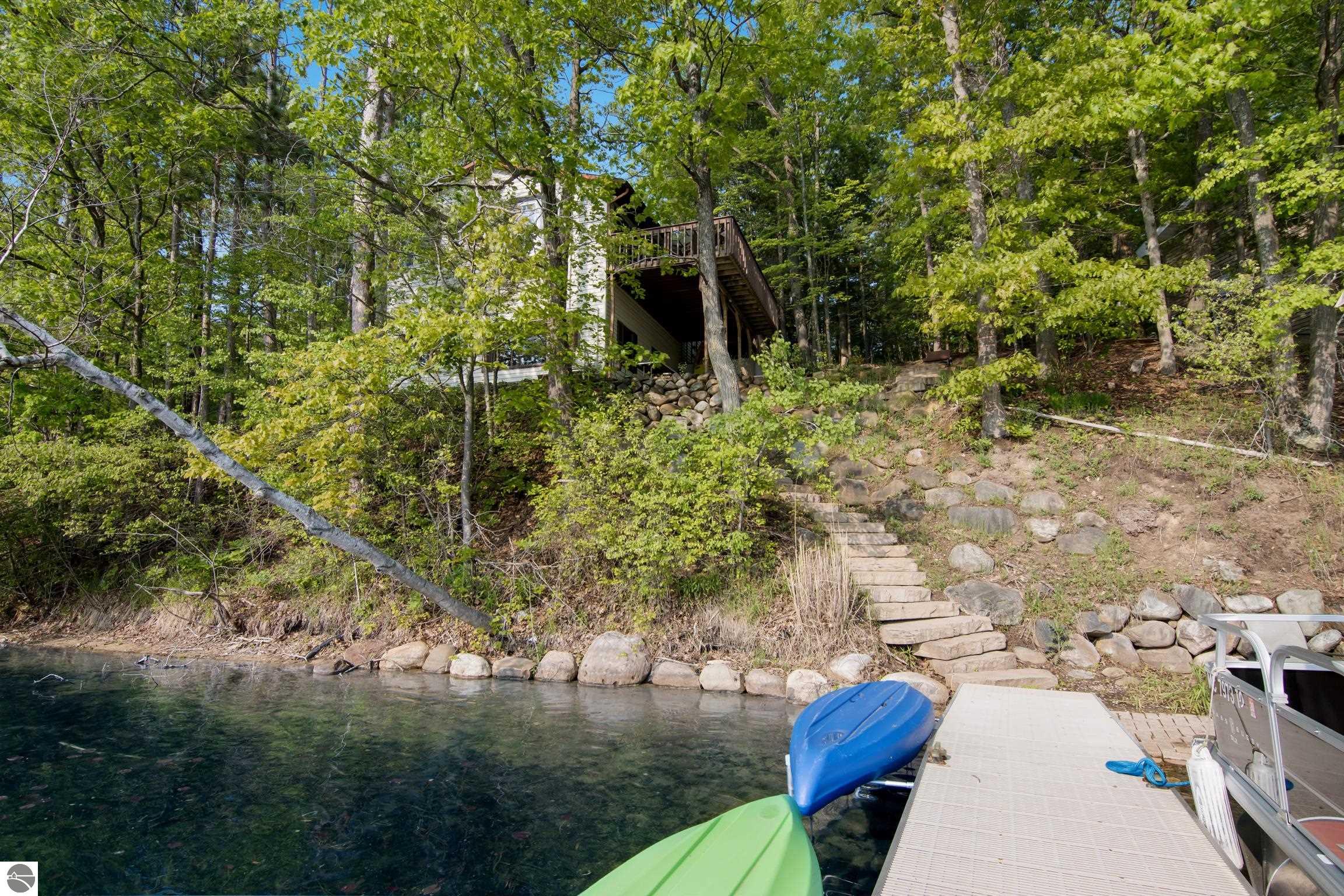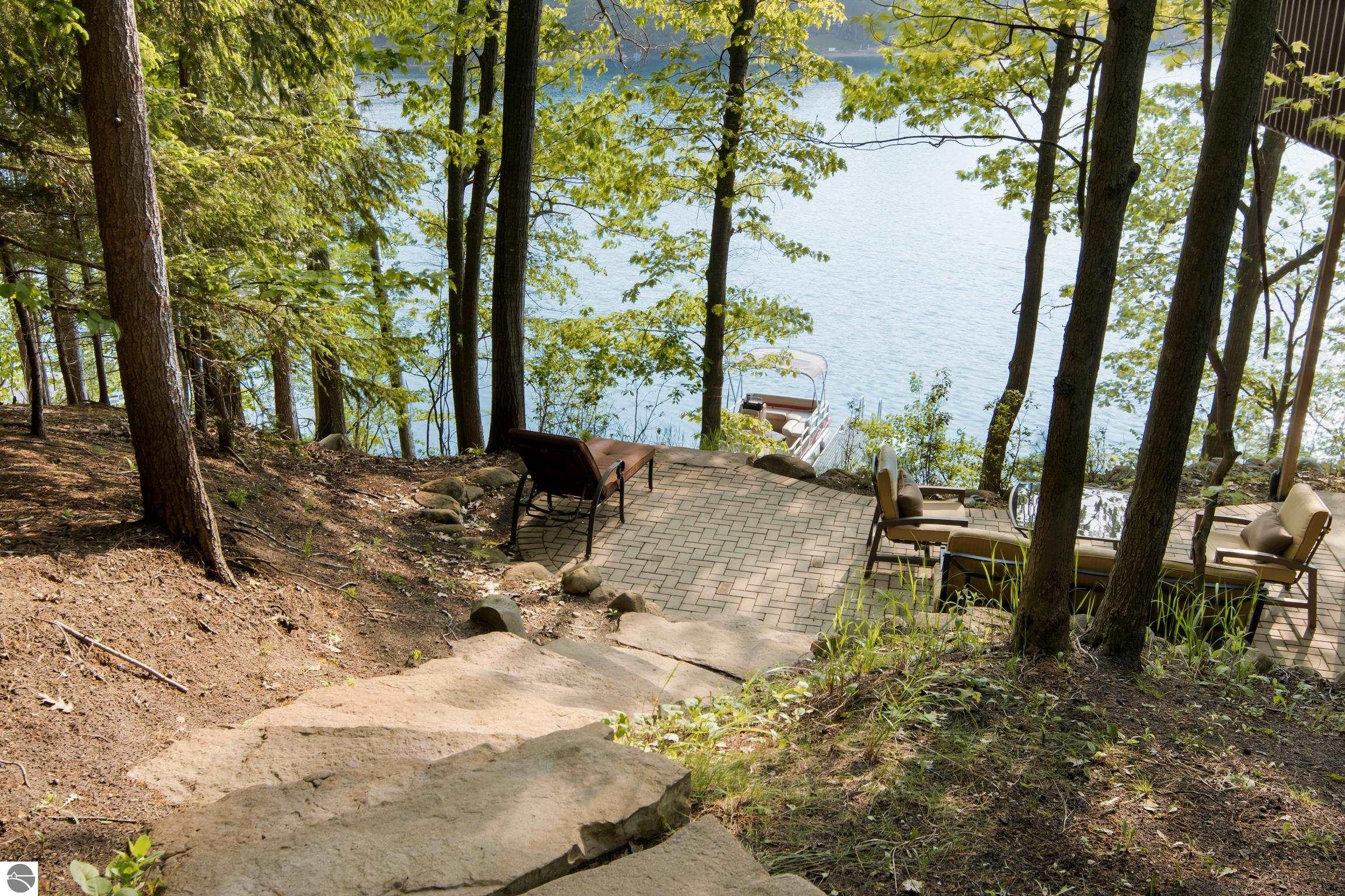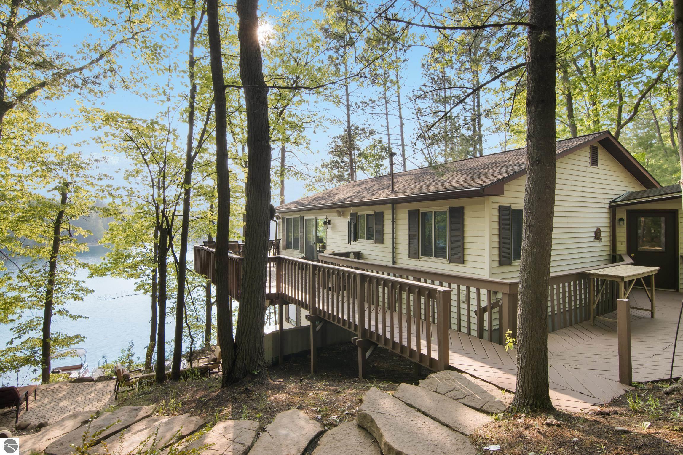 Lakefront Living at Its Finest! Discover the perfect blend of tranquility and recreation with this stunning 3-bedroom (third bedroom is non-conforming), 2-bathroom lakefront retreat, nestled on the shores of an all-sports inland lake. Boasting 100 feet of private frontage, this beautifully maintained home offers breathtaking water views, thoughtful outdoor design, and year-round enjoyment. Step inside to a warm and inviting interior with an open floor plan that maximizes natural light and captures panoramic lake views. The spacious living area flows seamlessly into a well-appointed kitchen, perfect for entertaining or quiet mornings overlooking the water. Each bedroom offers comfort and privacy, while the primary suite includes serene views. Outside, professionally designed hardscaping enhances the natural beauty of the lot--featuring a large lakeside patio, fire pit area, and beautifully terraced access to the water's edge. Whether you're boating, swimming, or simply relaxing with a sunset backdrop, the outdoor space is ready for every season of enjoyment. A two-car garage provides ample storage for lake toys and gear, while the peaceful setting ensures a true escape from the everyday. Perfect as a year-round residence or a luxurious getaway, this property combines lakeside serenity with full access to the excitement of an all-sports lake. Don't miss this rare opportunity to own 100 feet of pristine frontage in an unbeatable location.