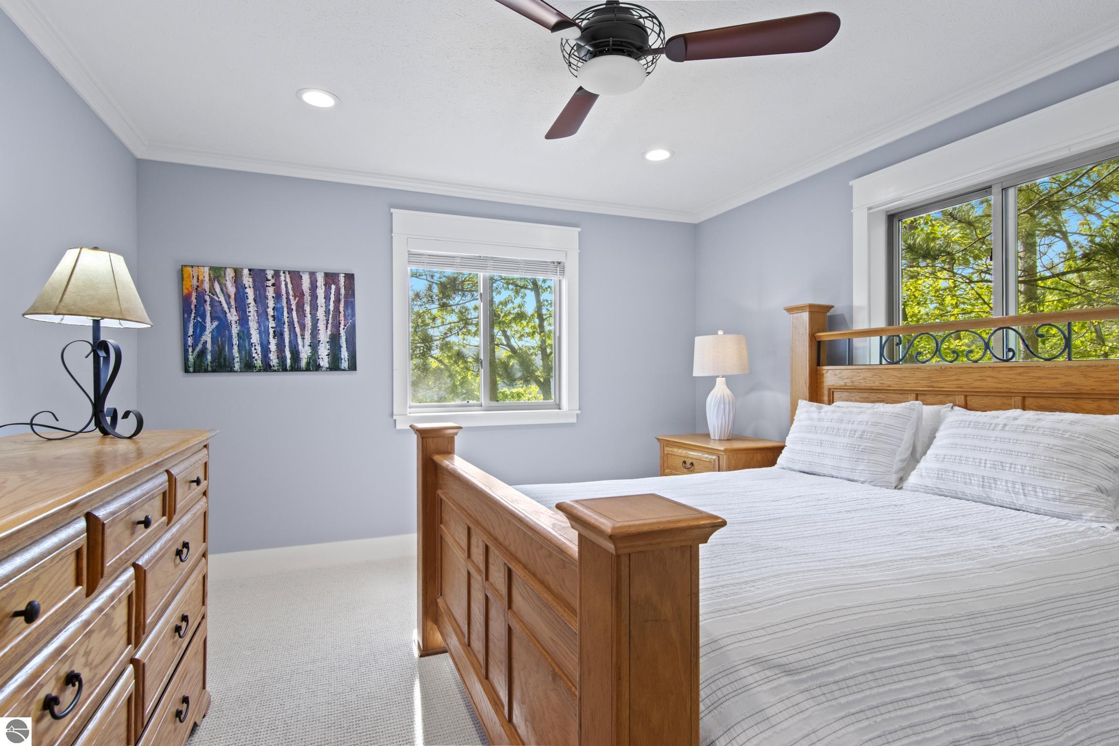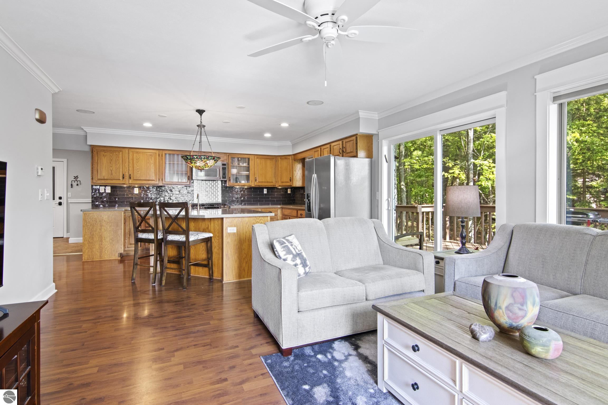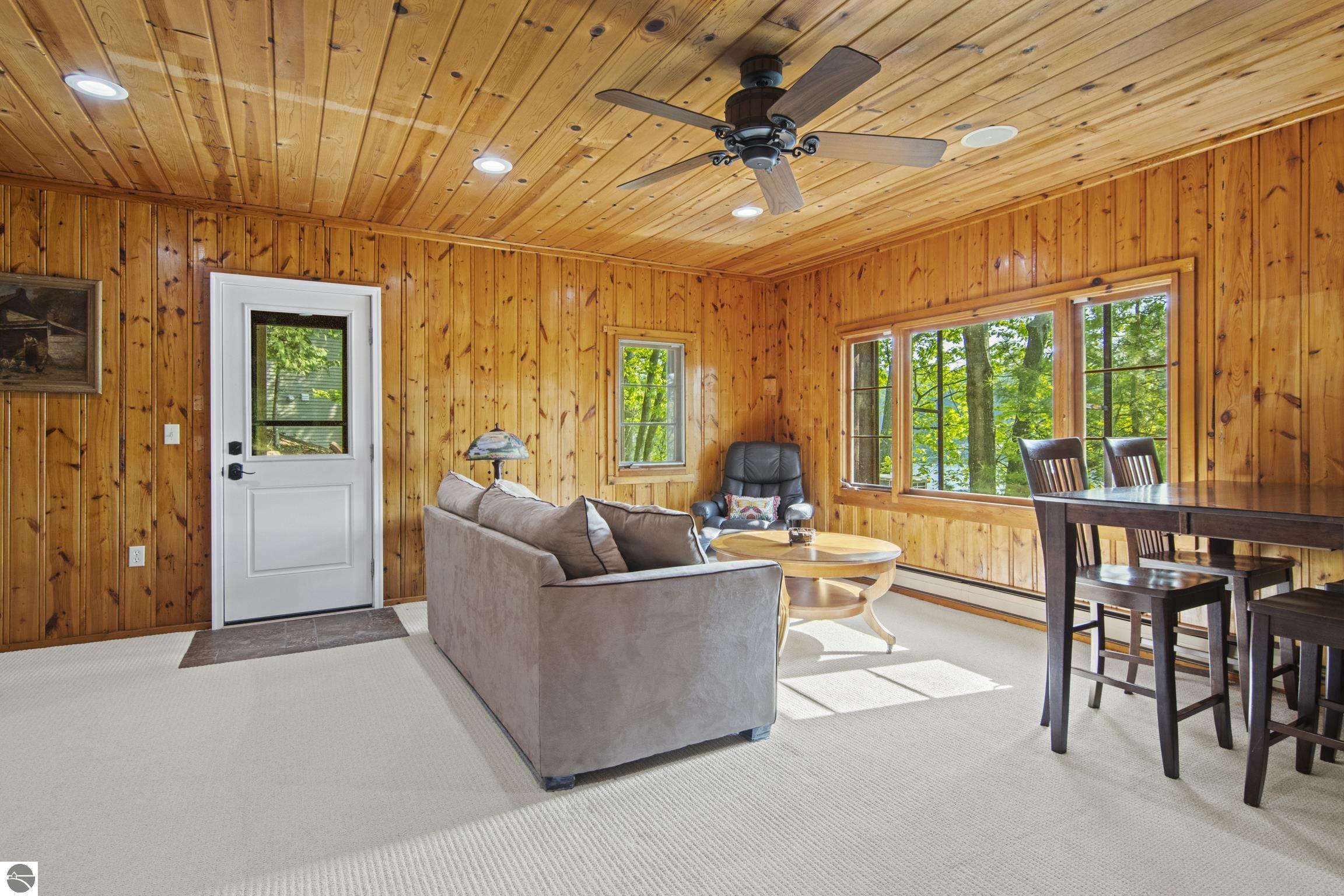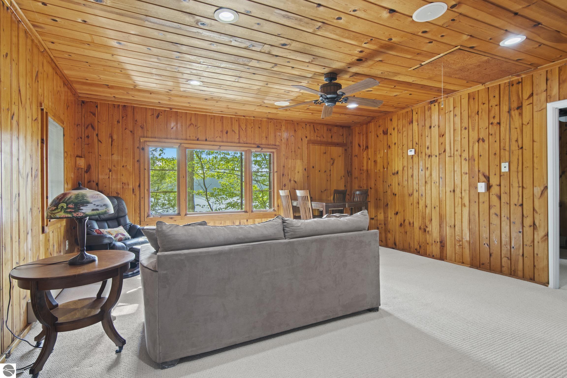 Lakefront Living at Its Finest! Discover the perfect blend of tranquility and recreation with this stunning 3-bedroom (third bedroom is non-conforming), 2-bathroom lakefront retreat, nestled on the shores of an all-sports inland lake. Boasting 100 feet of private frontage, this beautifully maintained home offers breathtaking water views, thoughtful outdoor design, and year-round enjoyment. Step inside to a warm and inviting interior with an open floor plan that maximizes natural light and captures panoramic lake views. The spacious living area flows seamlessly into a well-appointed kitchen, perfect for entertaining or quiet mornings overlooking the water. Each bedroom offers comfort and privacy, while the primary suite includes serene views. Outside, professionally designed hardscaping enhances the natural beauty of the lot--featuring a large lakeside patio, fire pit area, and beautifully terraced access to the water's edge. Whether you're boating, swimming, or simply relaxing with a sunset backdrop, the outdoor space is ready for every season of enjoyment. A two-car garage provides ample storage for lake toys and gear, while the peaceful setting ensures a true escape from the everyday. Perfect as a year-round residence or a luxurious getaway, this property combines lakeside serenity with full access to the excitement of an all-sports lake. Don't miss this rare opportunity to own 100 feet of pristine frontage in an unbeatable location.