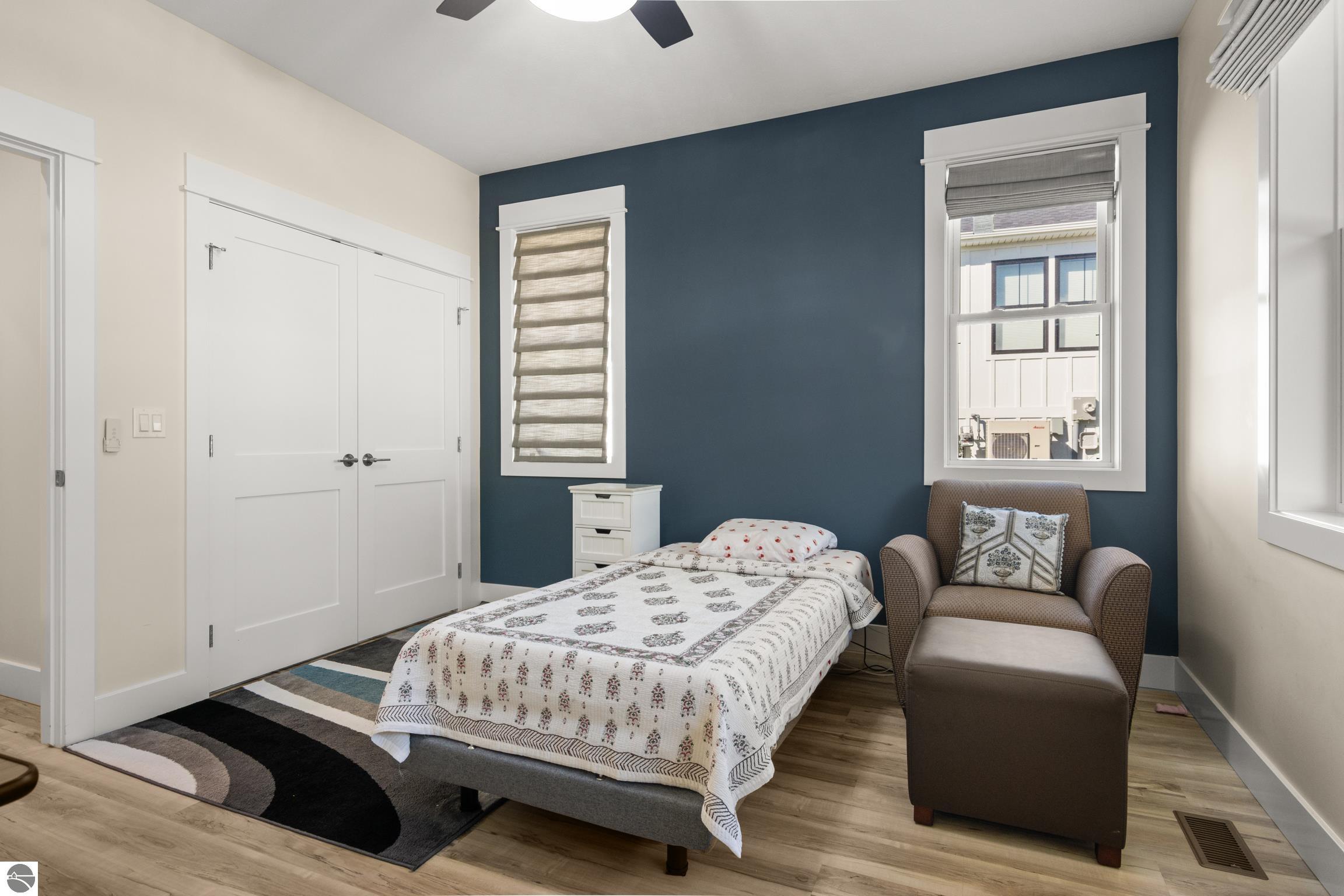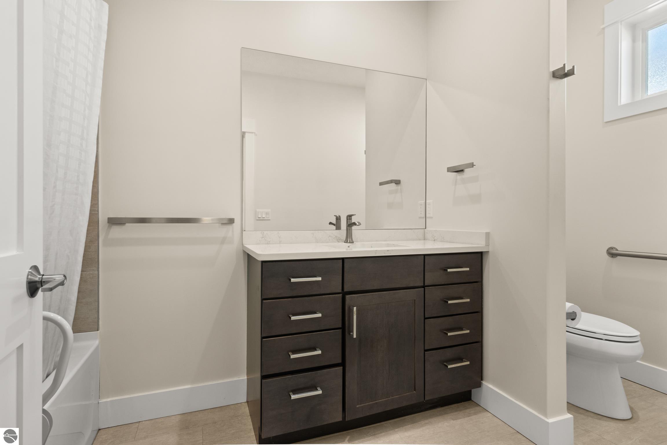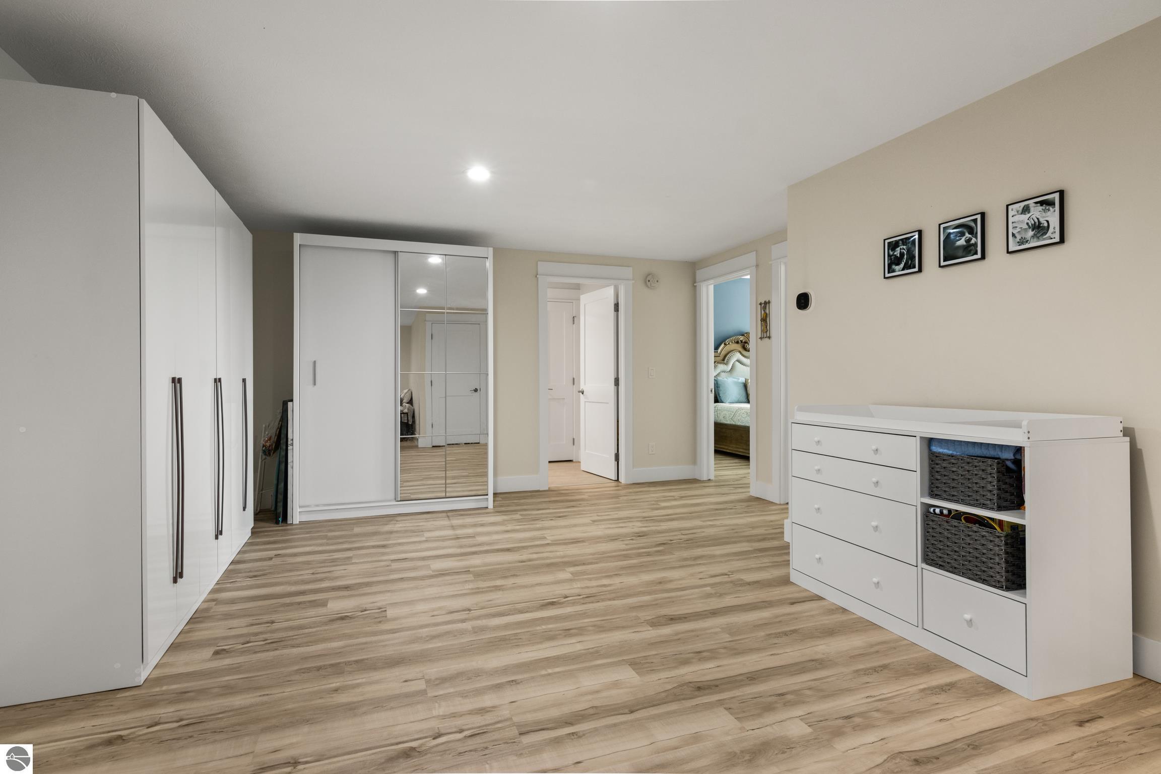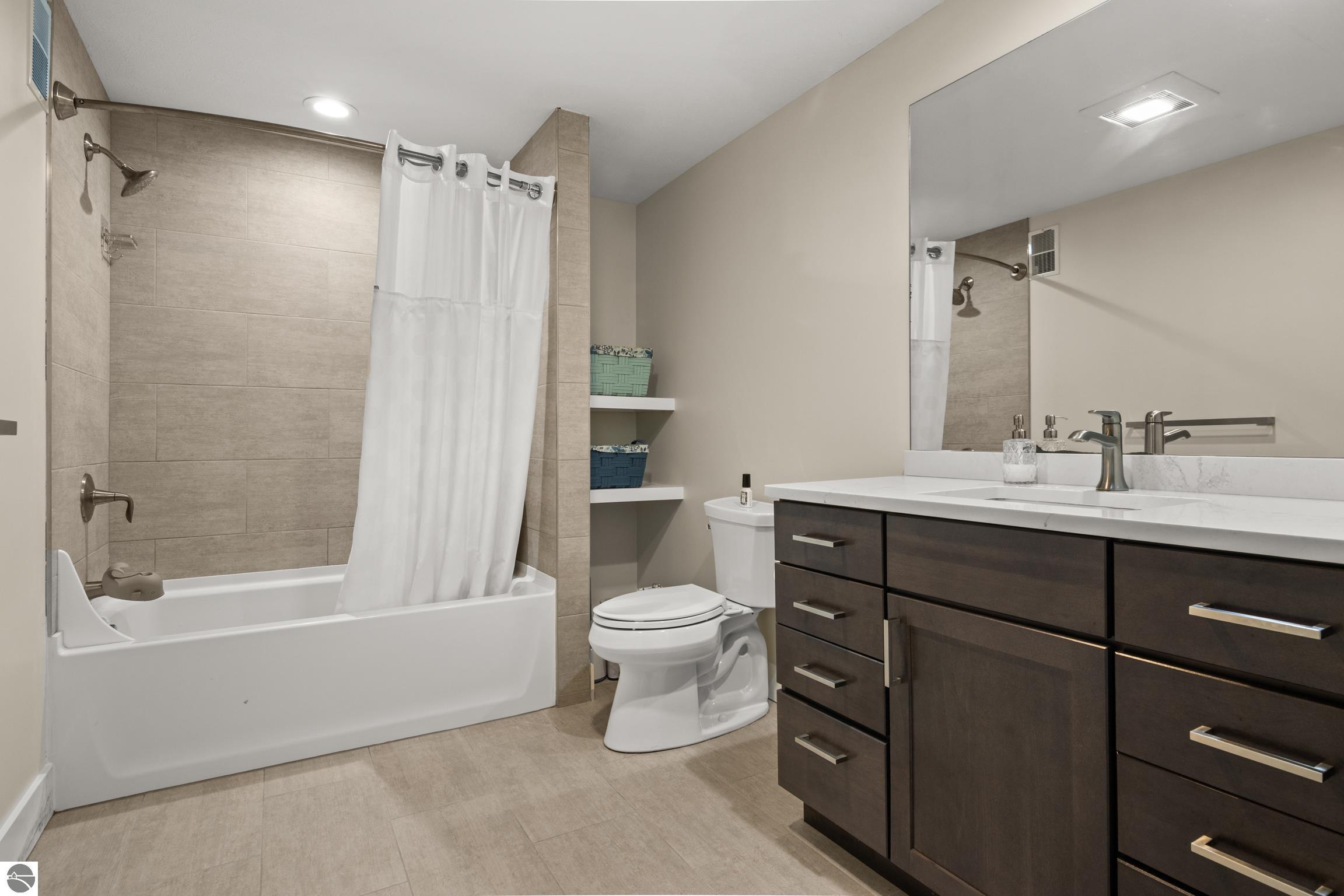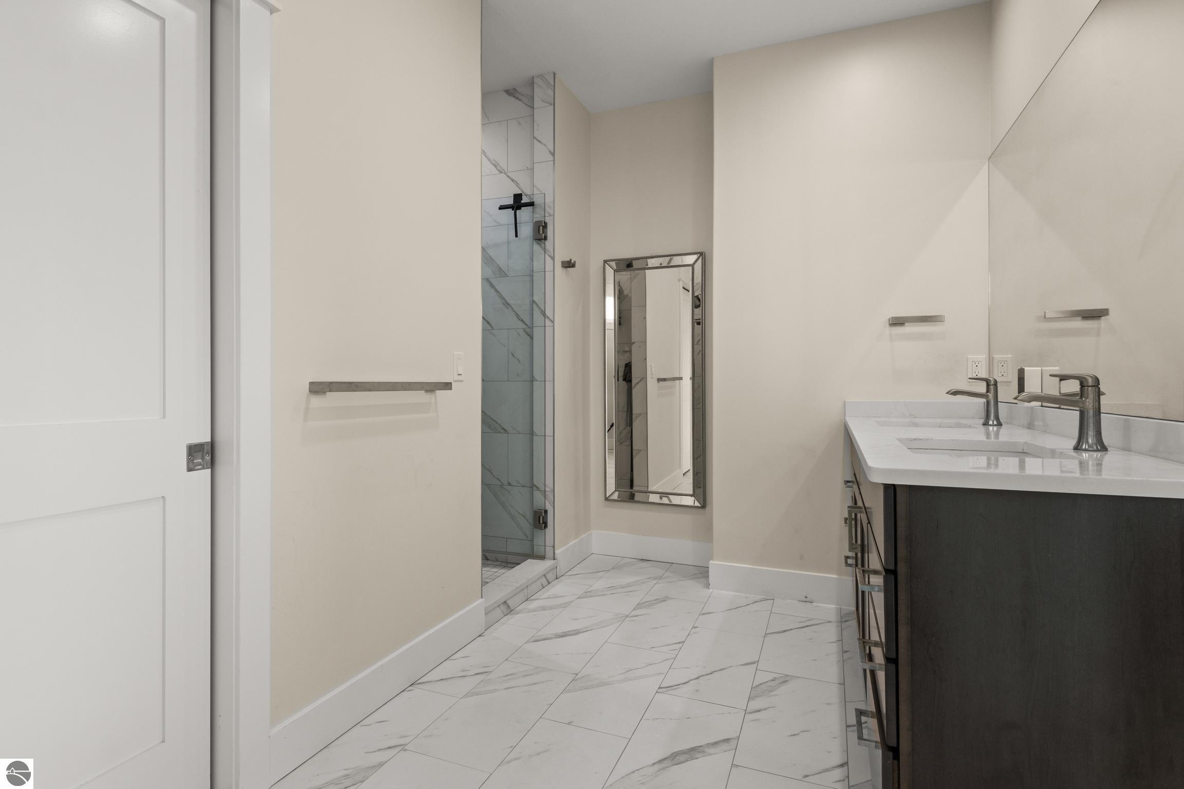 Welcome to Eagles View -- One of Traverse City's Premier Communities! This like-new, one-owner custom-built home offers the perfect blend of style, comfort, and functionality in one of Traverse City's most desirable developments. Its sweeping views make a stunning, picturesque backdrop. Thoughtfully designed with attention to detail throughout, this residence provides the ease of main-floor living in an open and inviting layout. The spacious primary suite features a private bath and a walk-in closet. The primary bedroom has a trayed ceiling to add to the luxurious look. The bright and modern kitchen is equipped with granite countertops, stainless steel appliances, a large island, a pantry, and extra shelving. The living and dining areas showcase a trayed ceiling, a stunning stone-surround gas fireplace, and double...yes, double sliding doors that open to a private rear patio -- perfect for relaxing or entertaining. Luxury vinyl plank flooring runs through the main living areas, and the home includes central air conditioning for year-round comfort. All of the bathrooms have tile flooring. The main floor also offers a convenient laundry room just off the attached two-car finished garage. The finished lower-level walk-out includes two additional bedrooms, a full bathroom, a spacious family room, a recreational area, and ample storage space. Professionally landscaped by Living Art Landscapes, the yard is equipped with irrigation and provides a serene outdoor oasis. This home is ideally located just minutes from downtown Traverse City, Munson Medical Center, shopping, schools, and numerous hiking and biking trails.