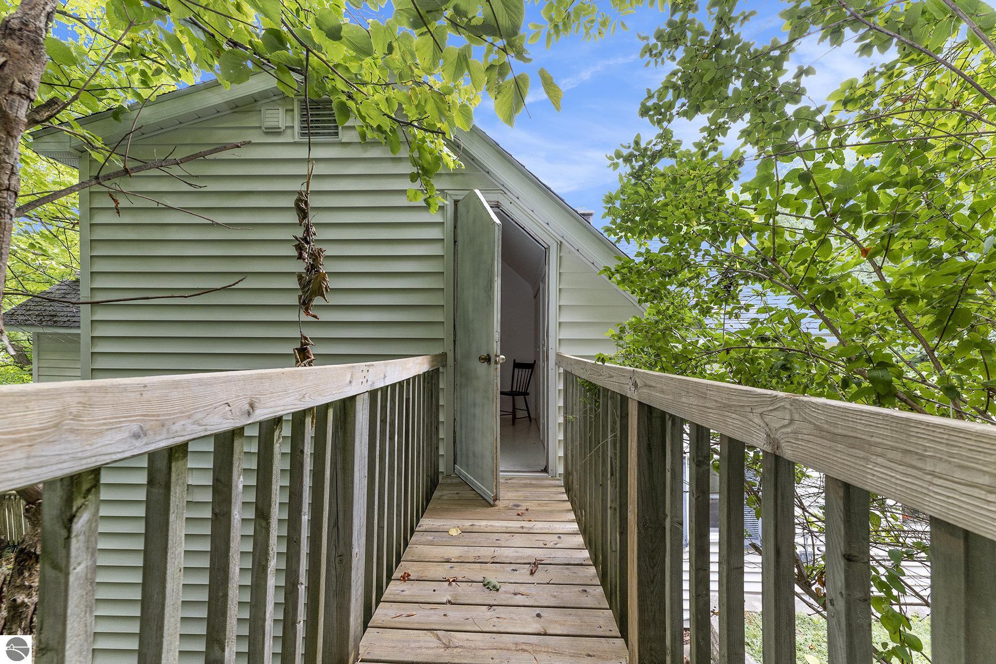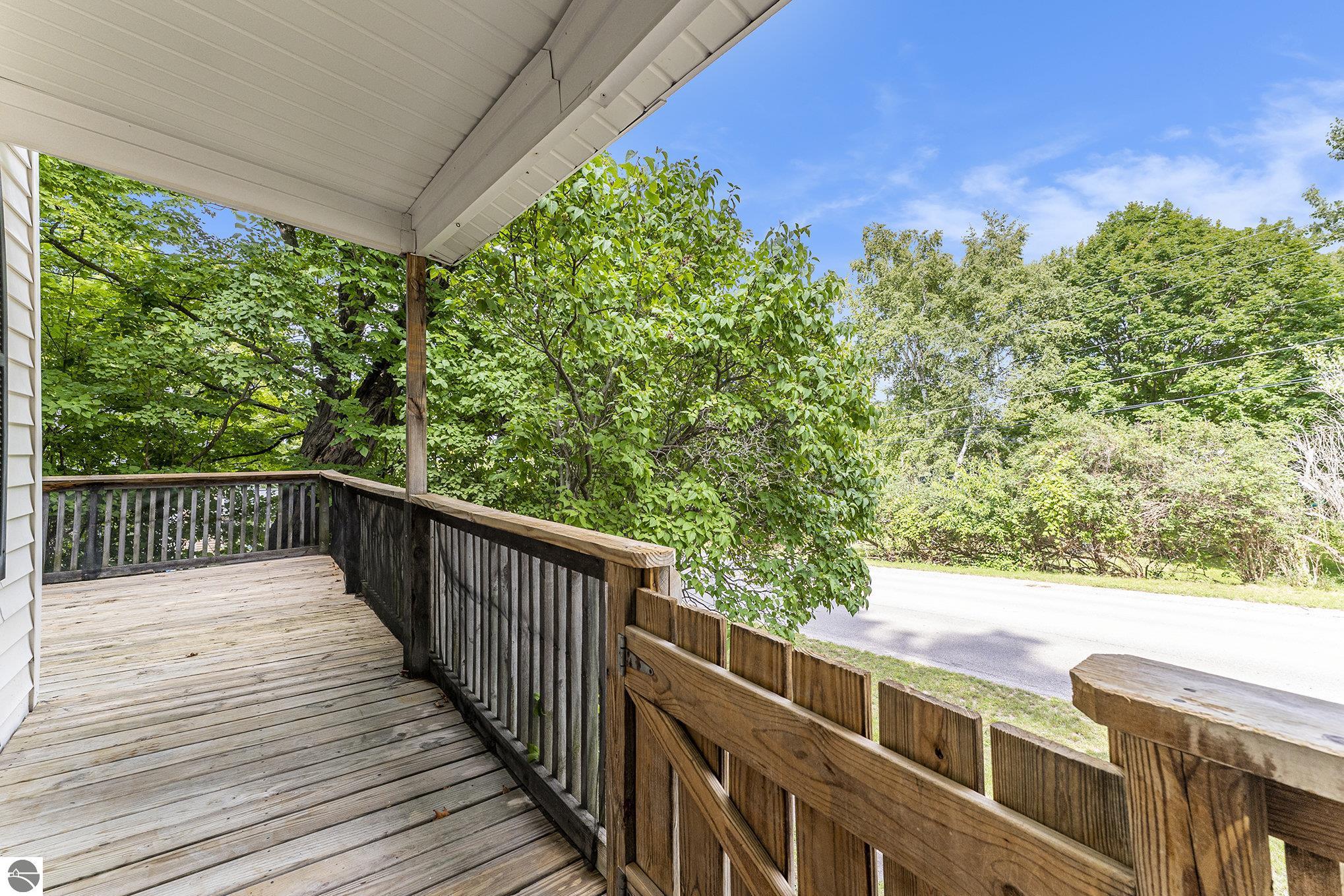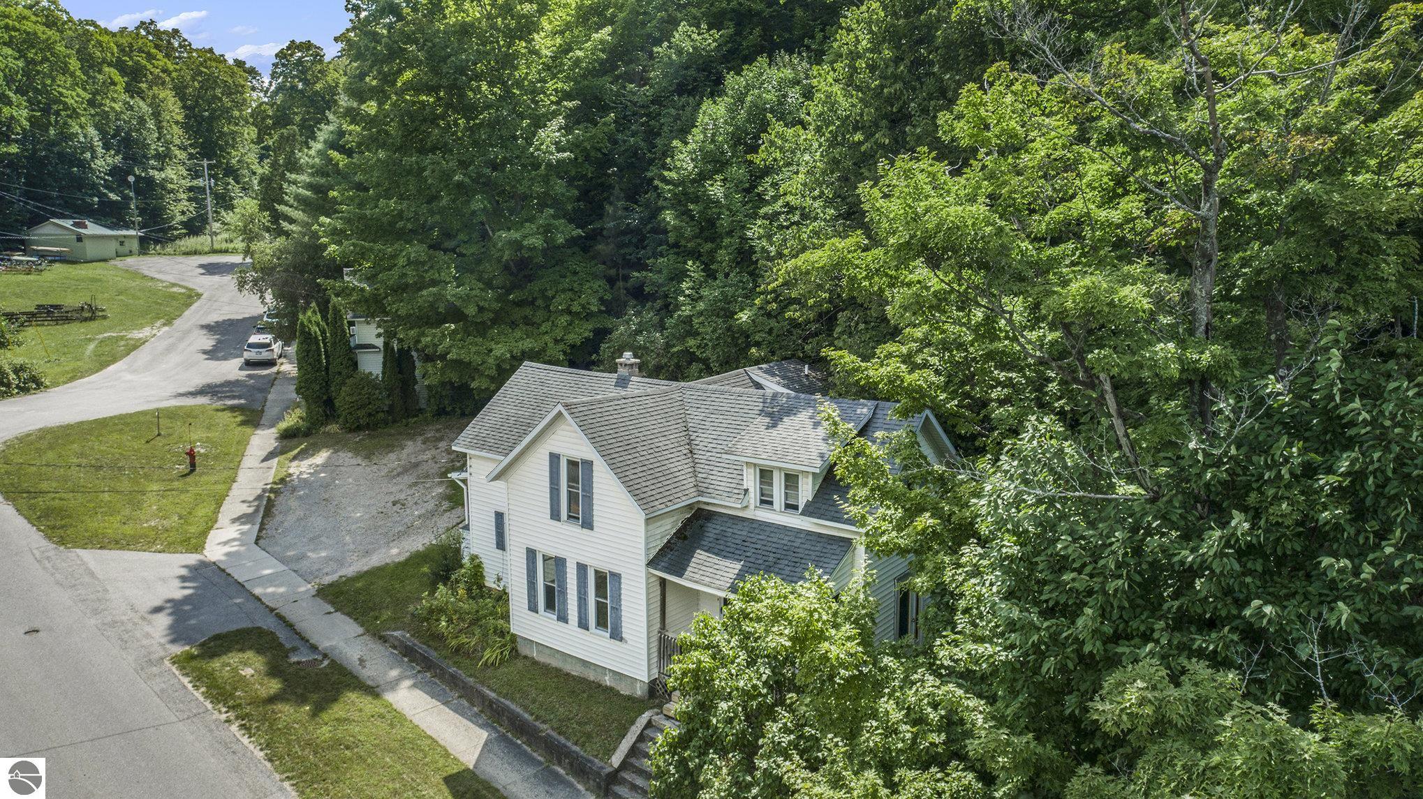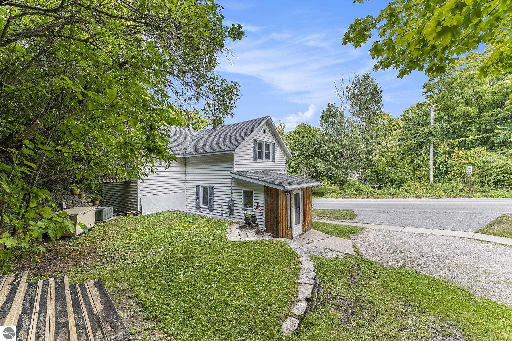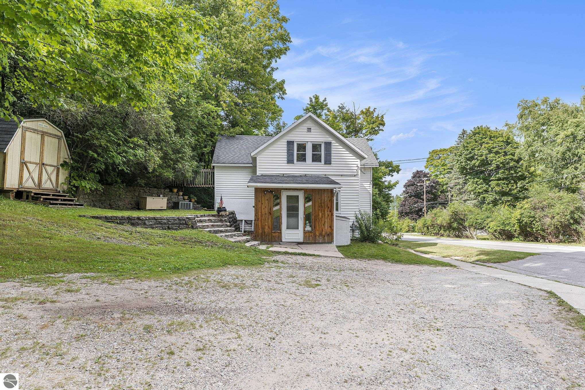*Charming 2-Story Farmhouse in the Village of Beulah* Nestled on a scenic, wooded hillside covered in myrtle, this charming two-story farmhouse offers peaceful living with all the comforts. Featuring a 2-sided wrap-around deck, perfect for soaking in the beauty of Northern Michigan. Upon arrival, a unique and inviting entryway greets you. Step up into a cozy coat room, ideal for shedding shoes and outerwear, before entering a secondary coat room with additional storage. This functional layout leads seamlessly into the heart of the home: the kitchen. From there, it flows into a spacious dining room, perfect for gathering. Onward, you enter the living room which then extends to the deck. Convenience is key, as well as a sizeable main-floor laundry room that doubles as a full bathroom. Upstairs, you'll find three comfortable bedrooms and another full bath, ensuring plenty of space for everyone. A pantry under the stairs provides practical storage solutions, while a bonus storage shed outside offers extra room for outdoor gear. With municipal water and sewer, natural gas heating, and a public-maintained road, this home ensures ease of living year-round. The ample parking space is perfect for hosting visitors, while the tranquil hillside setting offers privacy and relaxation. This welcoming farmhouse is a true gem, right in the heart of town, offering both character and convenience in a picturesque location. SOLD "AS IS".
