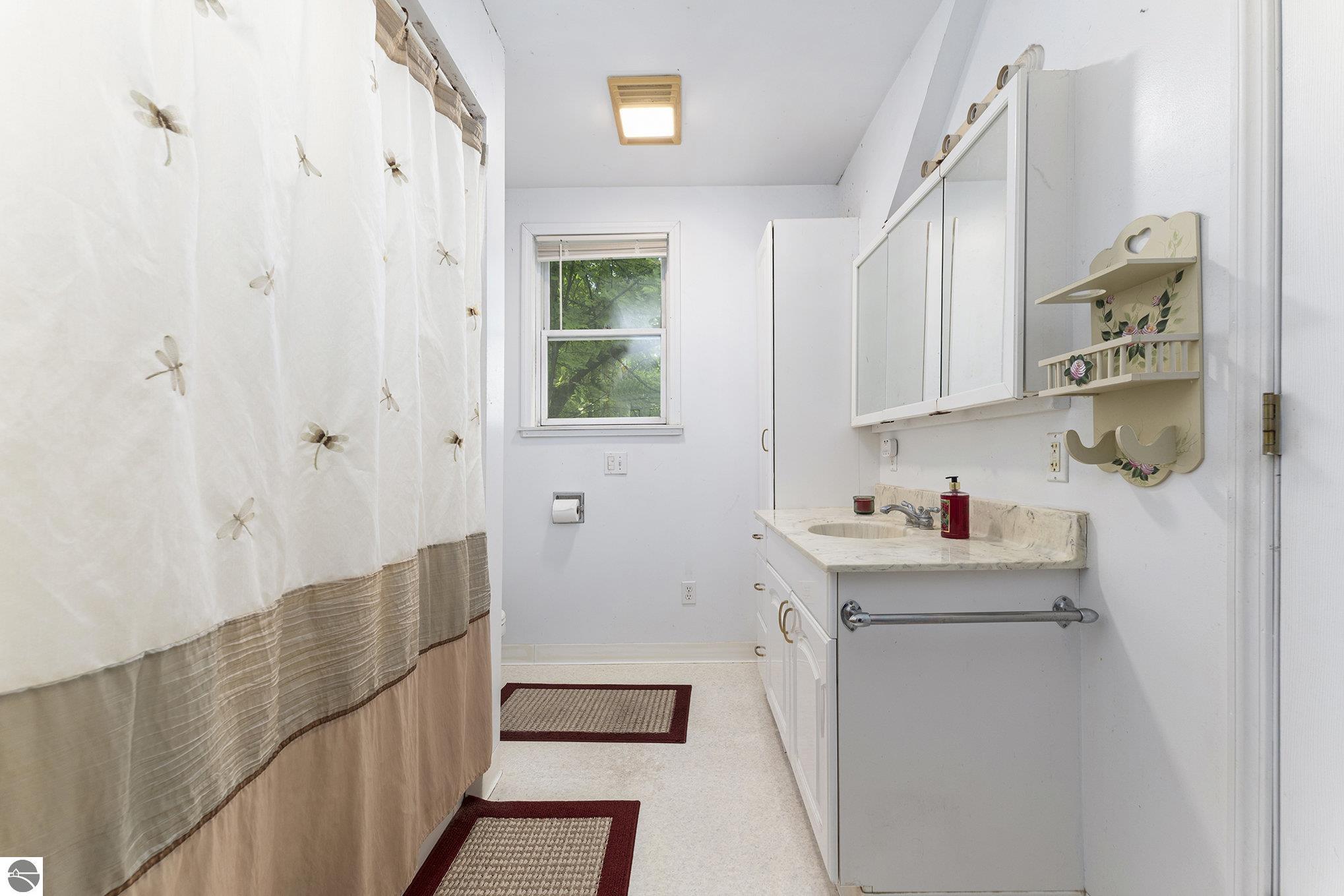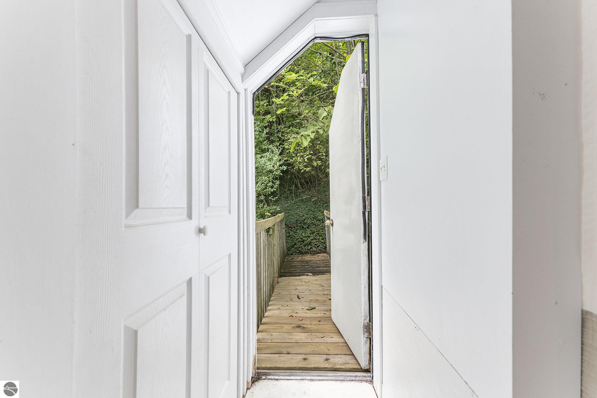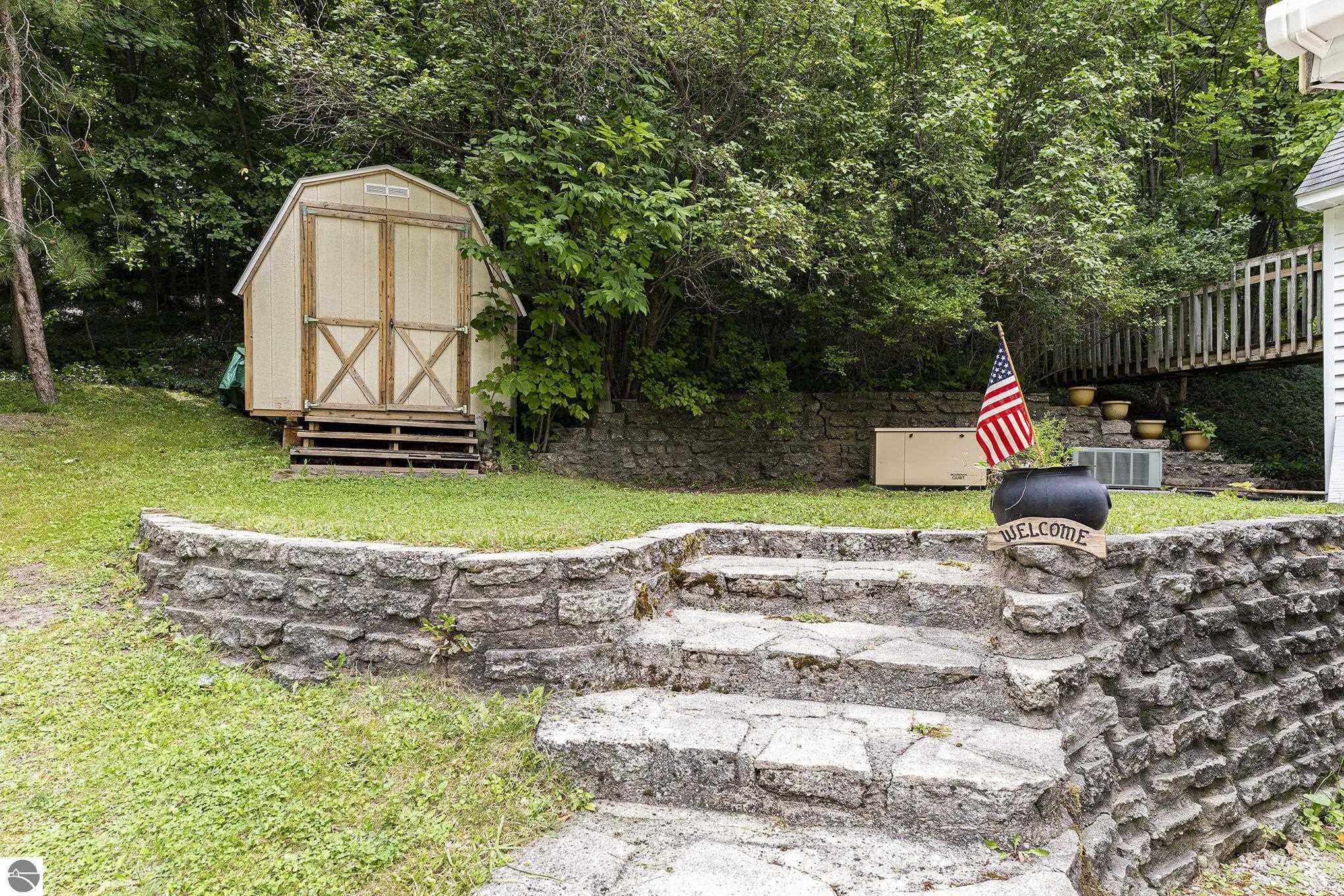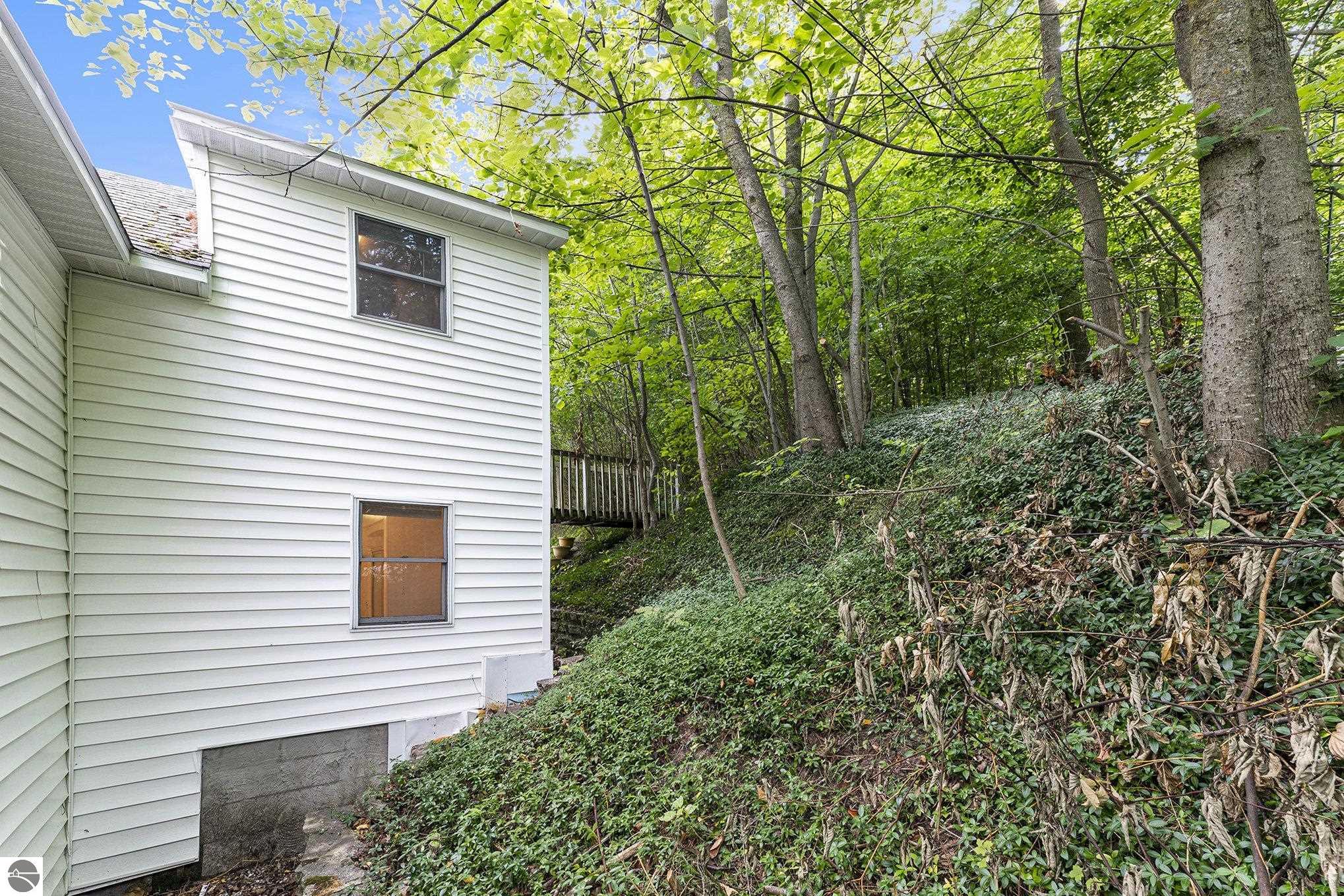 *Charming 2-Story Farmhouse in the Village of Beulah* Nestled on a scenic, wooded hillside covered in myrtle, this charming two-story farmhouse offers peaceful living with all the comforts. Featuring a 2-sided wrap-around deck, perfect for soaking in the beauty of Northern Michigan. Upon arrival, a unique and inviting entryway greets you. Step up into a cozy coat room, ideal for shedding shoes and outerwear, before entering a secondary coat room with additional storage. This functional layout leads seamlessly into the heart of the home: the kitchen. From there, it flows into a spacious dining room, perfect for gathering. Onward, you enter the living room which then extends to the deck. Convenience is key, as well as a sizeable main-floor laundry room that doubles as a full bathroom. Upstairs, you'll find three comfortable bedrooms and another full bath, ensuring plenty of space for everyone. A pantry under the stairs provides practical storage solutions, while a bonus storage shed outside offers extra room for outdoor gear. With municipal water and sewer, natural gas heating, and a public-maintained road, this home ensures ease of living year-round. The ample parking space is perfect for hosting visitors, while the tranquil hillside setting offers privacy and relaxation. This welcoming farmhouse is a true gem, right in the heart of town, offering both character and convenience in a picturesque location. SOLD "AS IS".