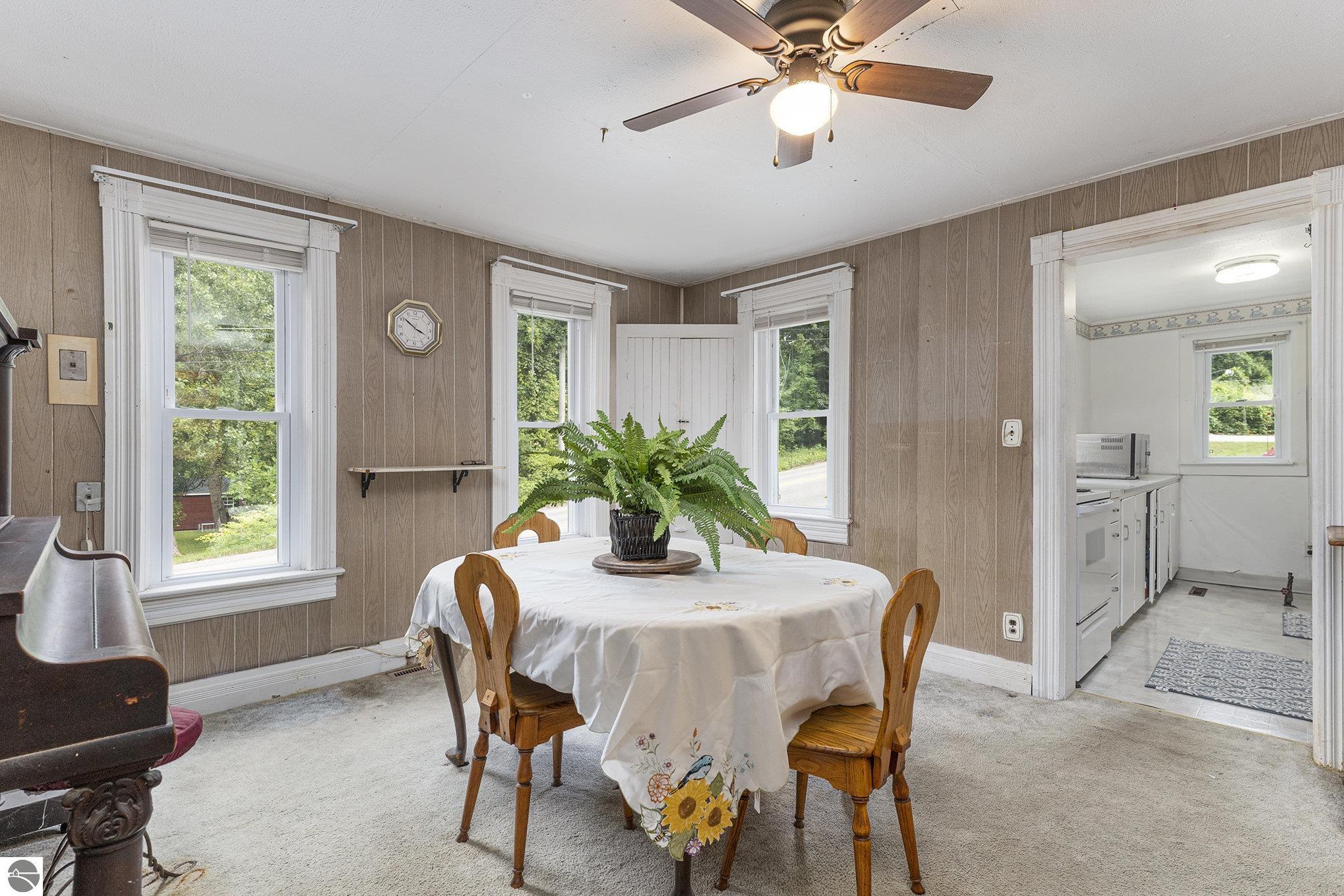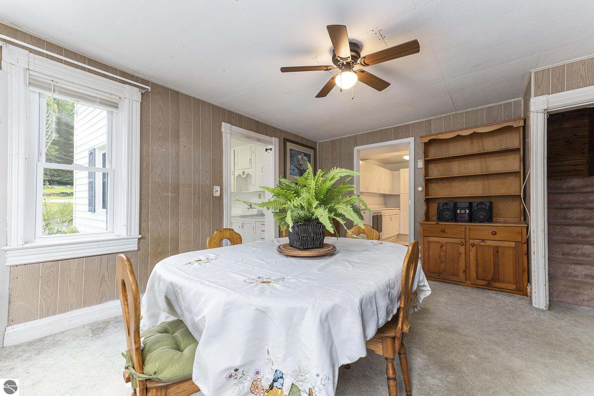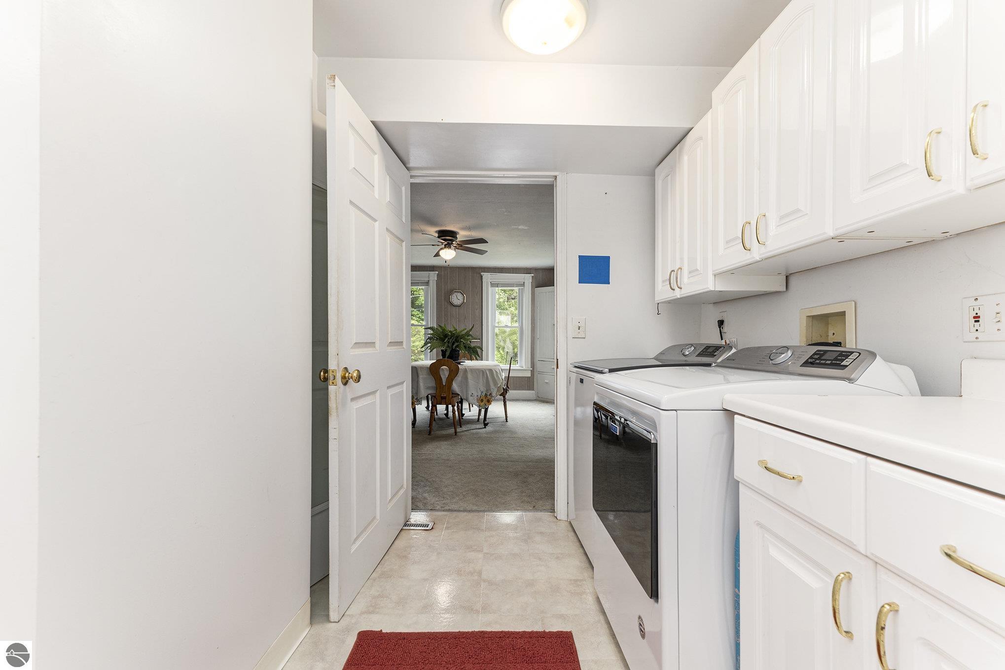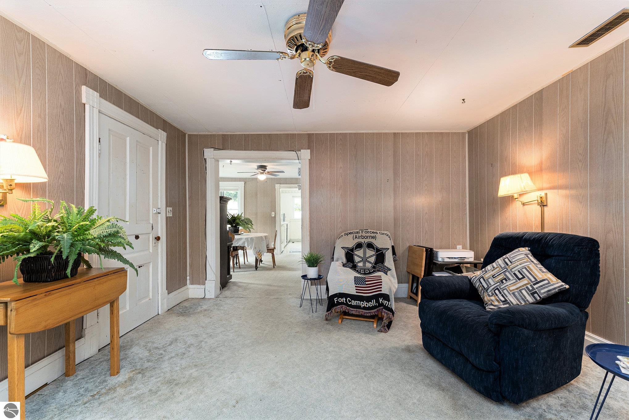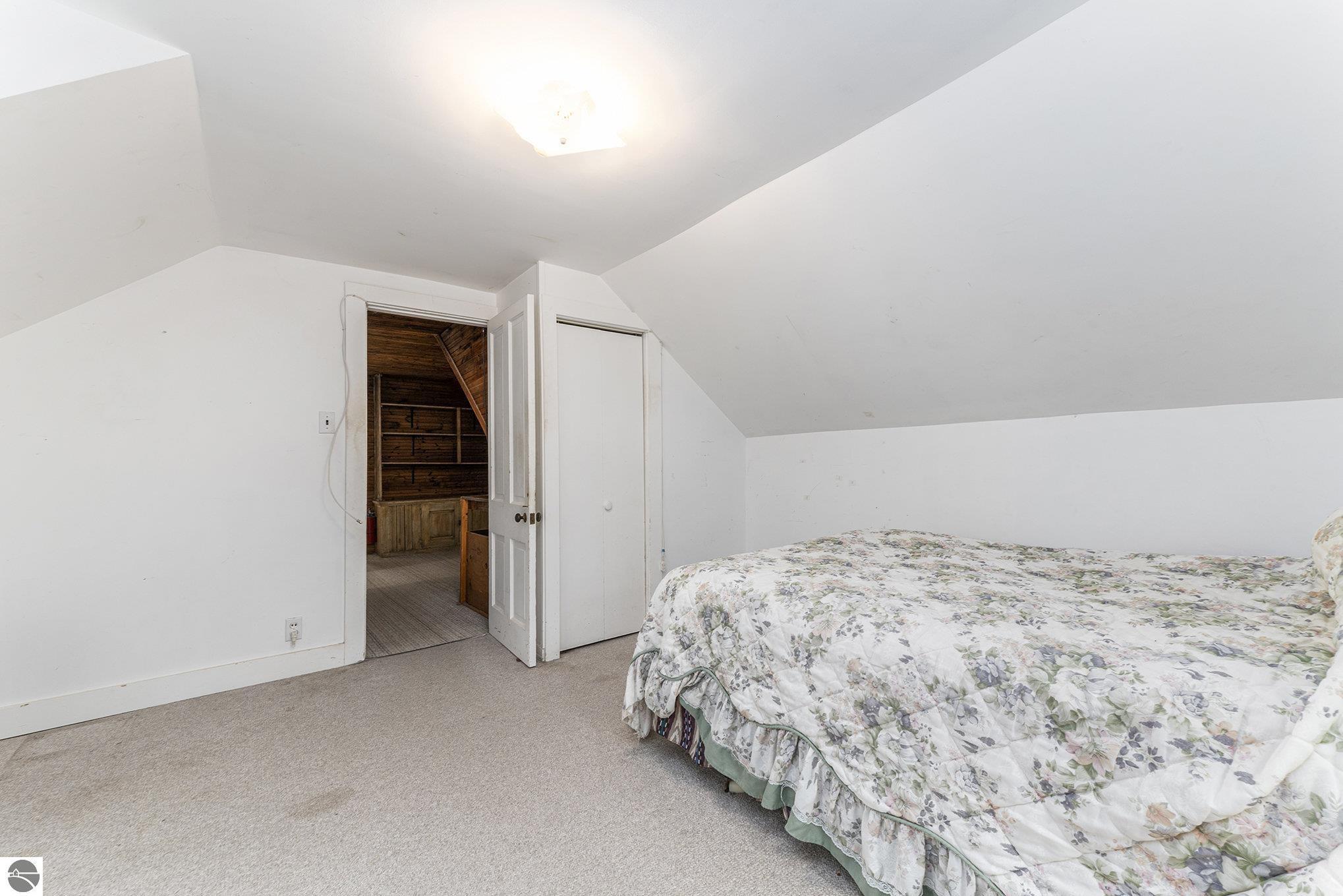 *Charming 2-Story Farmhouse in the Village of Beulah* Nestled on a scenic, wooded hillside covered in myrtle, this charming two-story farmhouse offers peaceful living with all the comforts. Featuring a 2-sided wrap-around deck, perfect for soaking in the beauty of Northern Michigan. Upon arrival, a unique and inviting entryway greets you. Step up into a cozy coat room, ideal for shedding shoes and outerwear, before entering a secondary coat room with additional storage. This functional layout leads seamlessly into the heart of the home: the kitchen. From there, it flows into a spacious dining room, perfect for gathering. Onward, you enter the living room which then extends to the deck. Convenience is key, as well as a sizeable main-floor laundry room that doubles as a full bathroom. Upstairs, you'll find three comfortable bedrooms and another full bath, ensuring plenty of space for everyone. A pantry under the stairs provides practical storage solutions, while a bonus storage shed outside offers extra room for outdoor gear. With municipal water and sewer, natural gas heating, and a public-maintained road, this home ensures ease of living year-round. The ample parking space is perfect for hosting visitors, while the tranquil hillside setting offers privacy and relaxation. This welcoming farmhouse is a true gem, right in the heart of town, offering both character and convenience in a picturesque location. SOLD "AS IS".