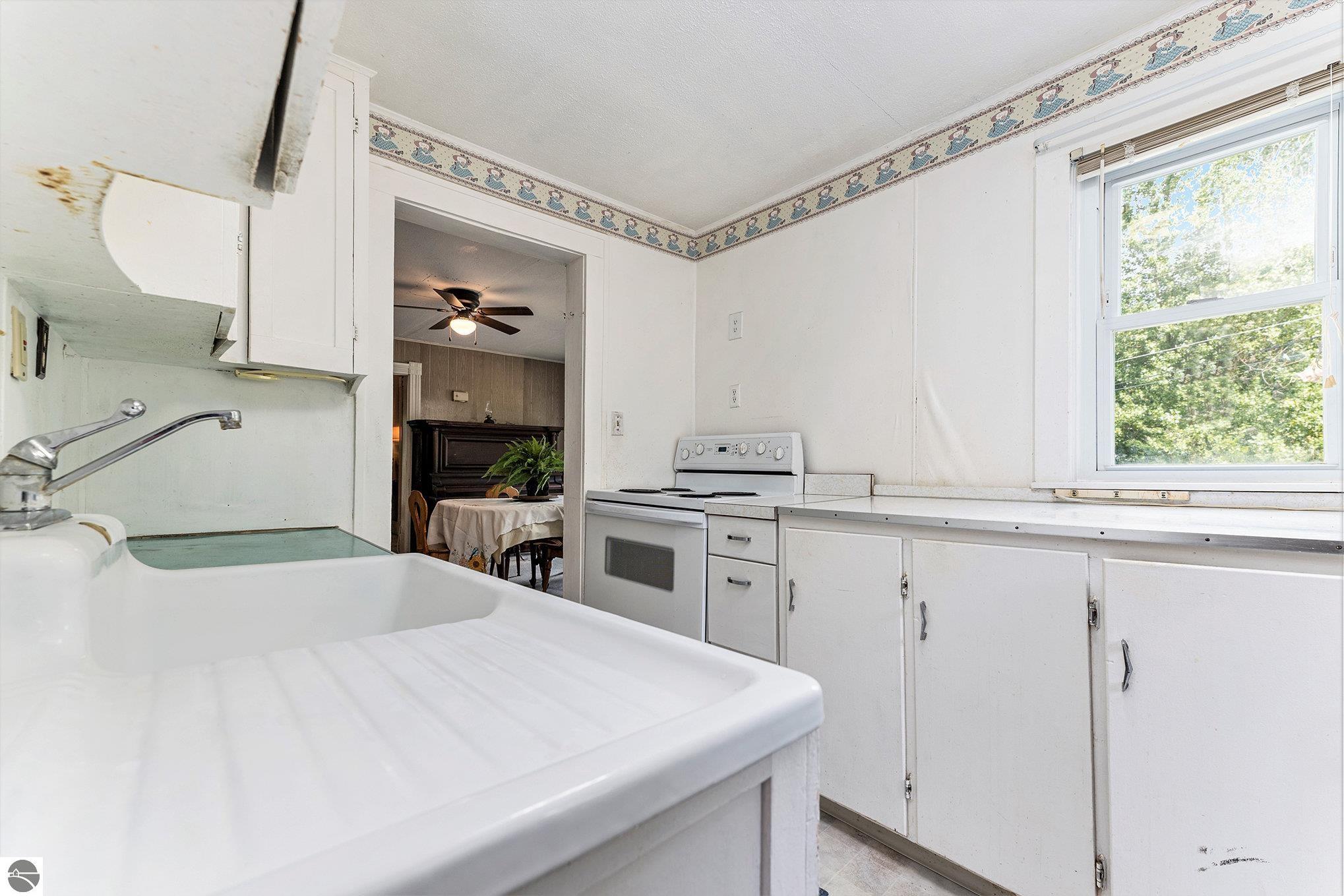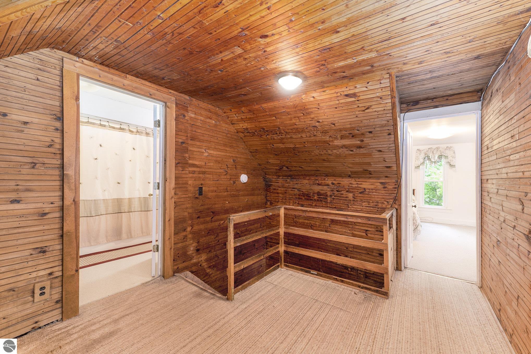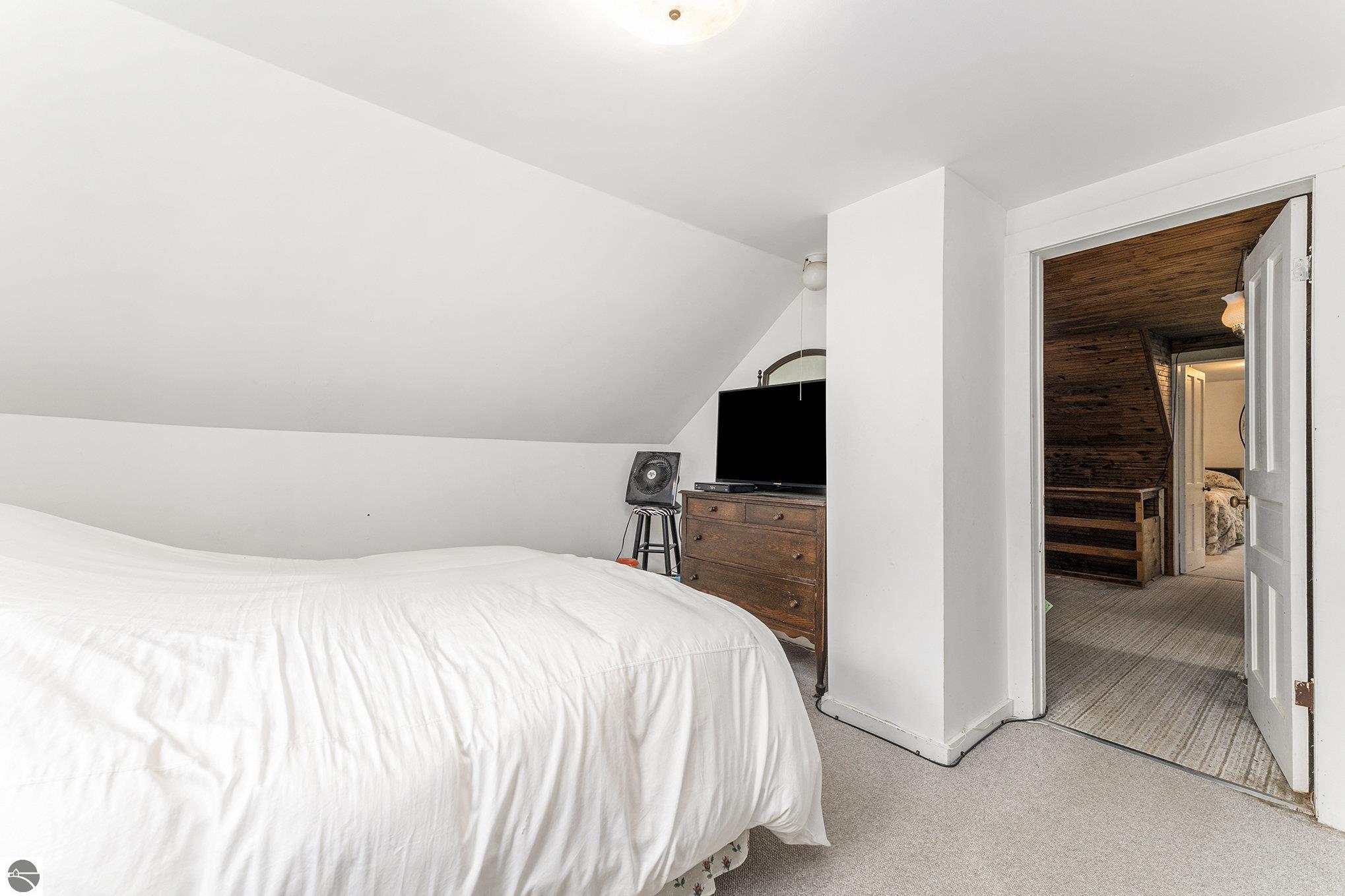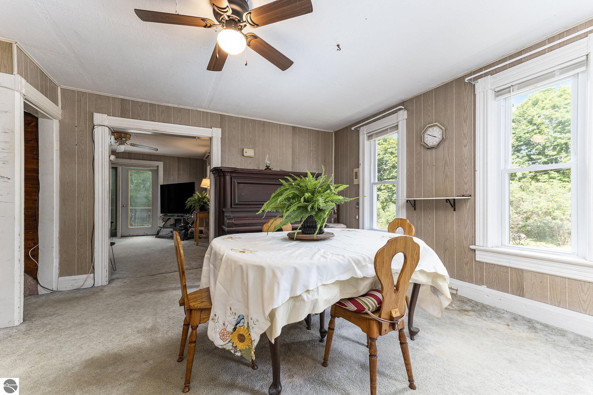 *Charming 2-Story Farmhouse in the Village of Beulah* Nestled on a scenic, wooded hillside covered in myrtle, this charming two-story farmhouse offers peaceful living with all the comforts. Featuring a 2-sided wrap-around deck, perfect for soaking in the beauty of Northern Michigan. Upon arrival, a unique and inviting entryway greets you. Step up into a cozy coat room, ideal for shedding shoes and outerwear, before entering a secondary coat room with additional storage. This functional layout leads seamlessly into the heart of the home: the kitchen. From there, it flows into a spacious dining room, perfect for gathering. Onward, you enter the living room which then extends to the deck. Convenience is key, as well as a sizeable main-floor laundry room that doubles as a full bathroom. Upstairs, you'll find three comfortable bedrooms and another full bath, ensuring plenty of space for everyone. A pantry under the stairs provides practical storage solutions, while a bonus storage shed outside offers extra room for outdoor gear. With municipal water and sewer, natural gas heating, and a public-maintained road, this home ensures ease of living year-round. The ample parking space is perfect for hosting visitors, while the tranquil hillside setting offers privacy and relaxation. This welcoming farmhouse is a true gem, right in the heart of town, offering both character and convenience in a picturesque location. SOLD "AS IS".