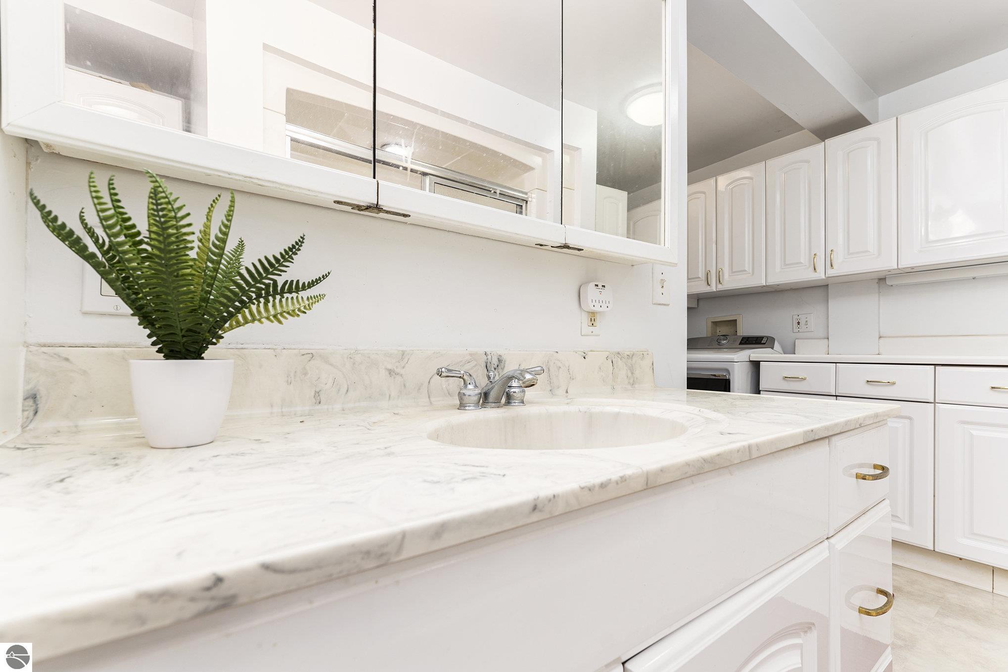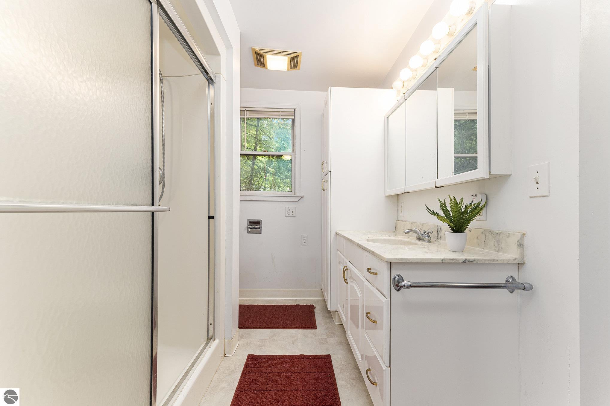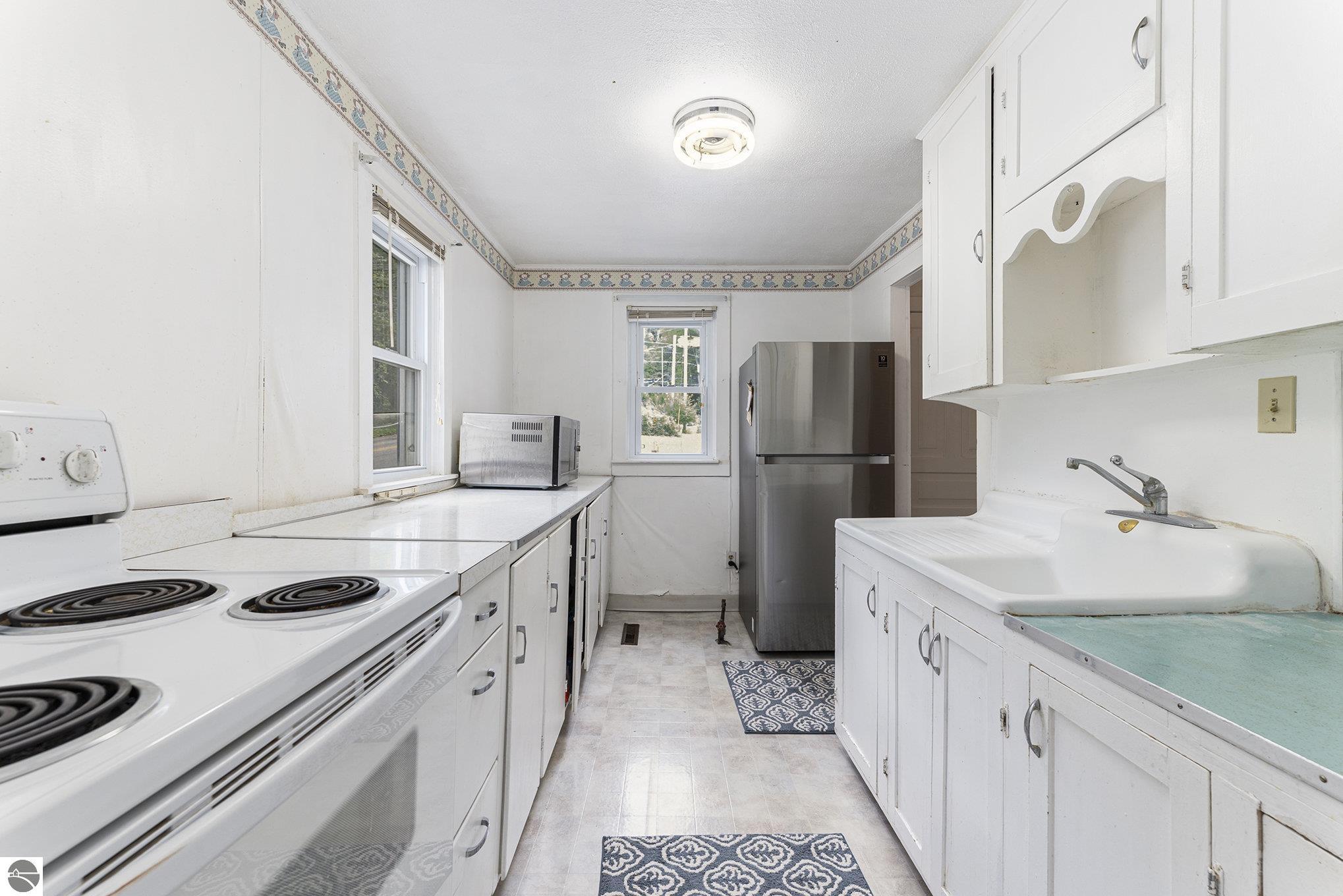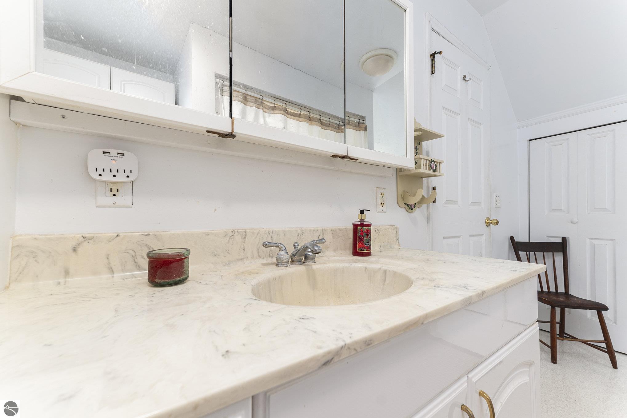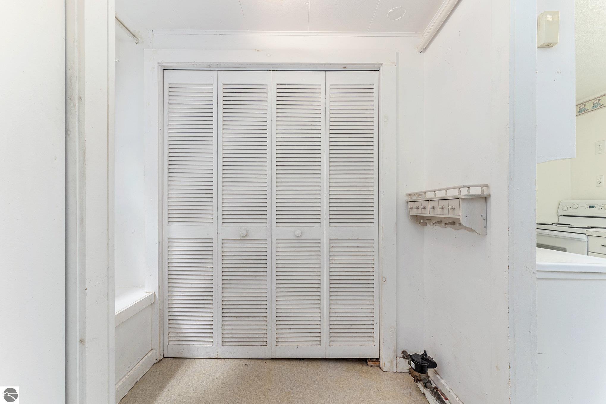 *Charming 2-Story Farmhouse in the Village of Beulah* Nestled on a scenic, wooded hillside covered in myrtle, this charming two-story farmhouse offers peaceful living with all the comforts. Featuring a 2-sided wrap-around deck, perfect for soaking in the beauty of Northern Michigan. Upon arrival, a unique and inviting entryway greets you. Step up into a cozy coat room, ideal for shedding shoes and outerwear, before entering a secondary coat room with additional storage. This functional layout leads seamlessly into the heart of the home: the kitchen. From there, it flows into a spacious dining room, perfect for gathering. Onward, you enter the living room which then extends to the deck. Convenience is key, as well as a sizeable main-floor laundry room that doubles as a full bathroom. Upstairs, you'll find three comfortable bedrooms and another full bath, ensuring plenty of space for everyone. A pantry under the stairs provides practical storage solutions, while a bonus storage shed outside offers extra room for outdoor gear. With municipal water and sewer, natural gas heating, and a public-maintained road, this home ensures ease of living year-round. The ample parking space is perfect for hosting visitors, while the tranquil hillside setting offers privacy and relaxation. This welcoming farmhouse is a true gem, right in the heart of town, offering both character and convenience in a picturesque location. SOLD "AS IS".