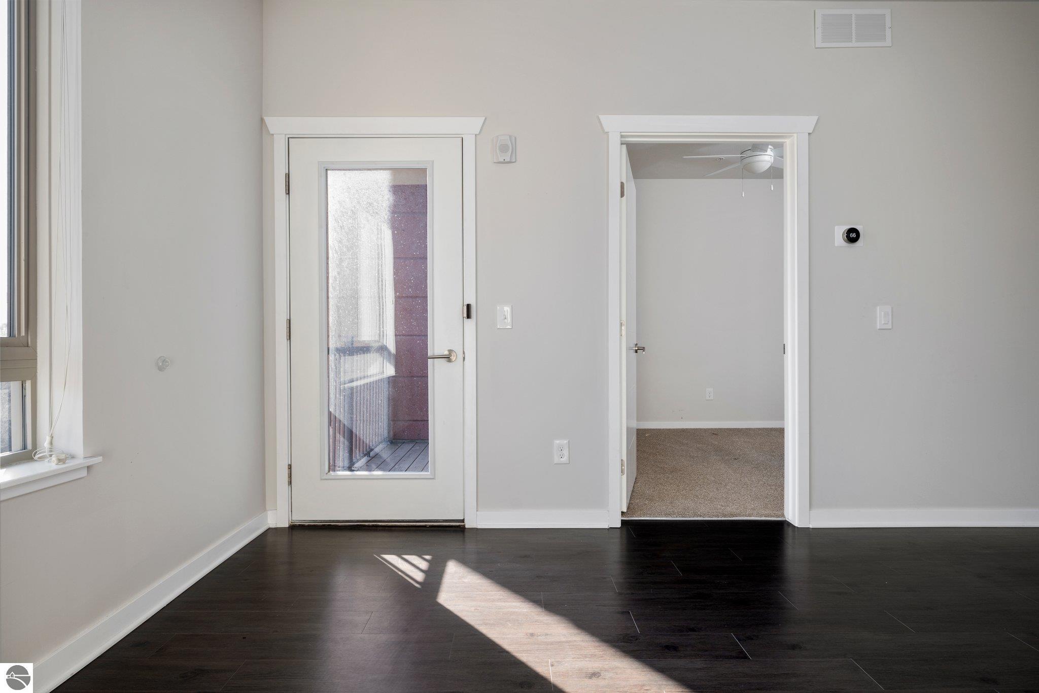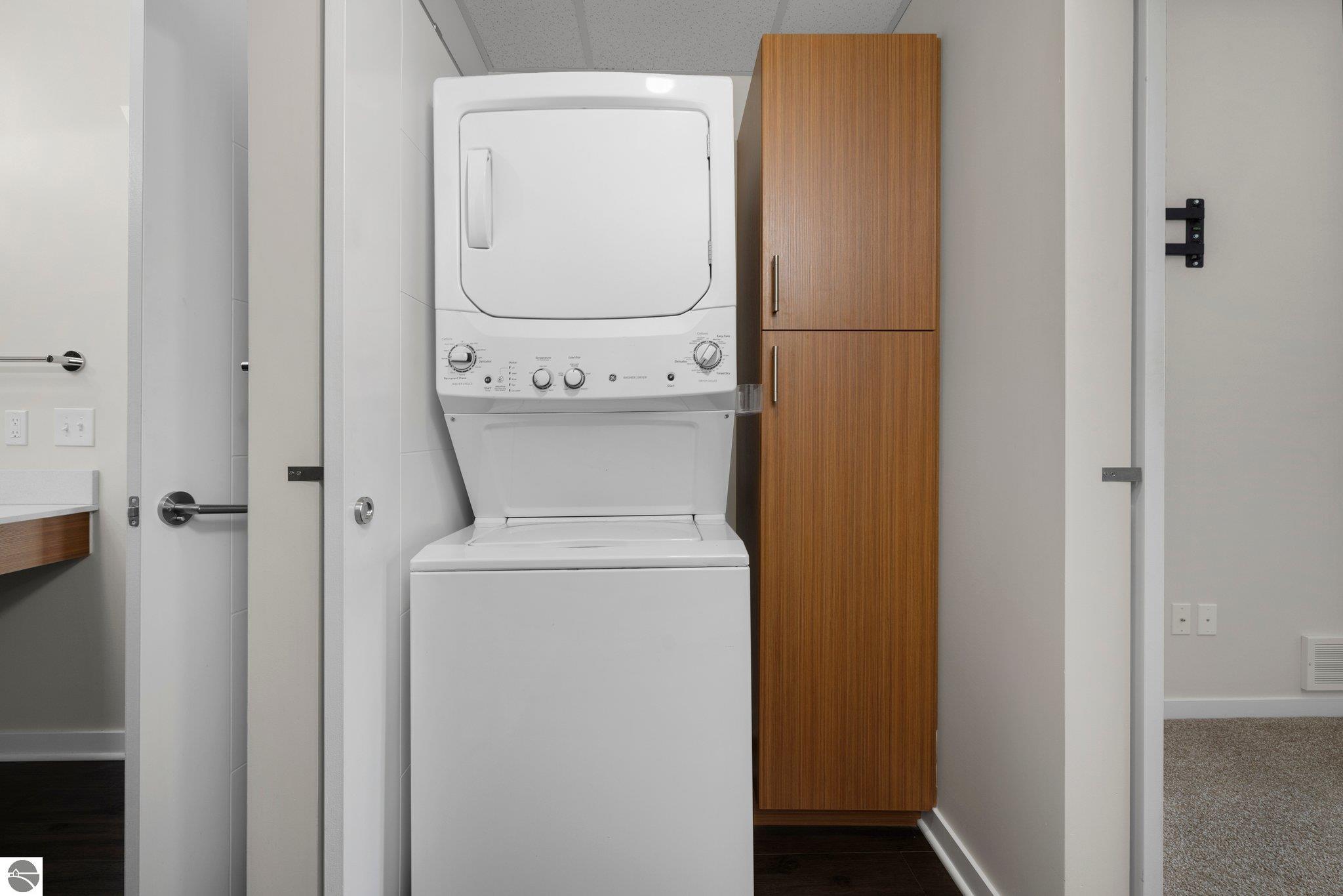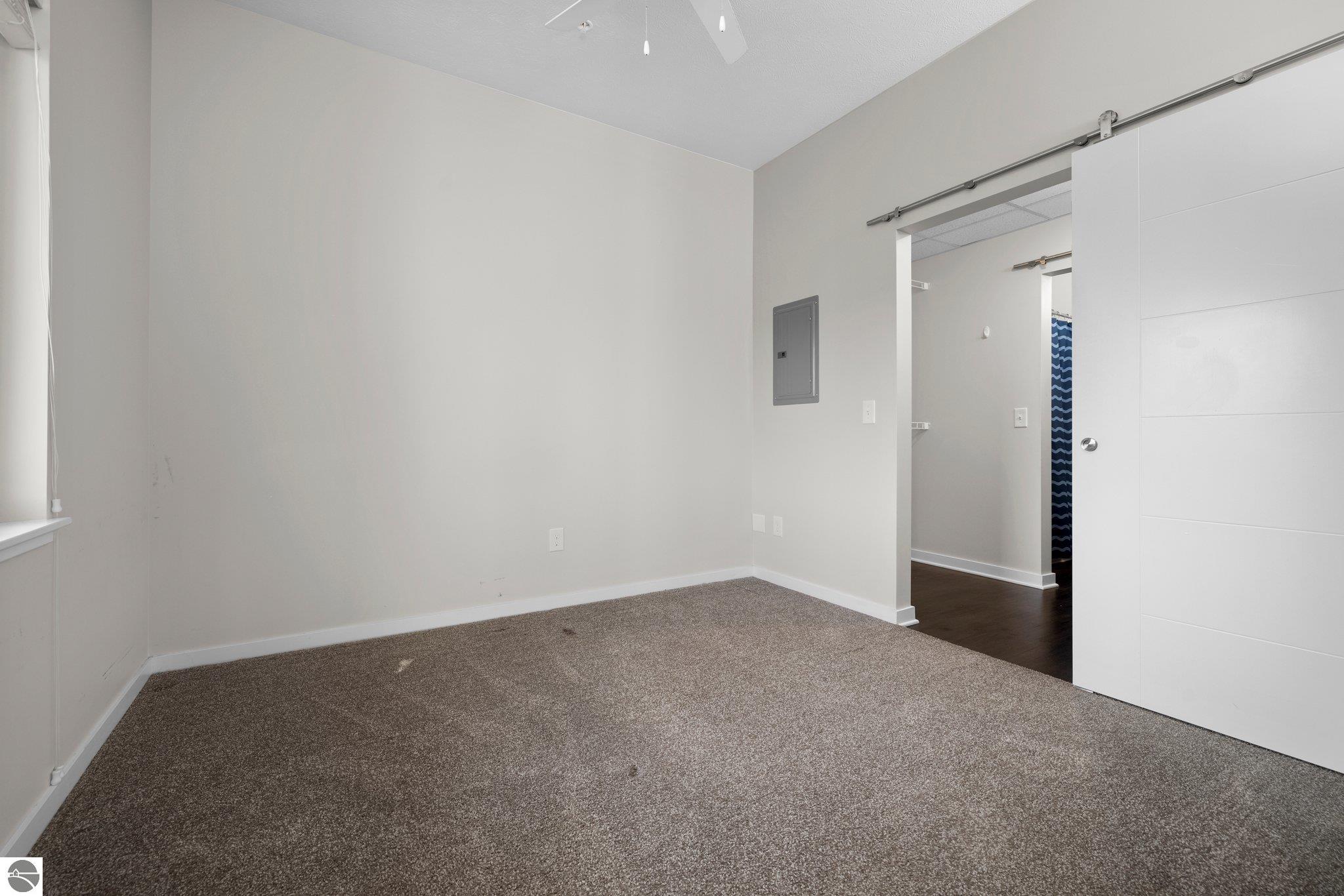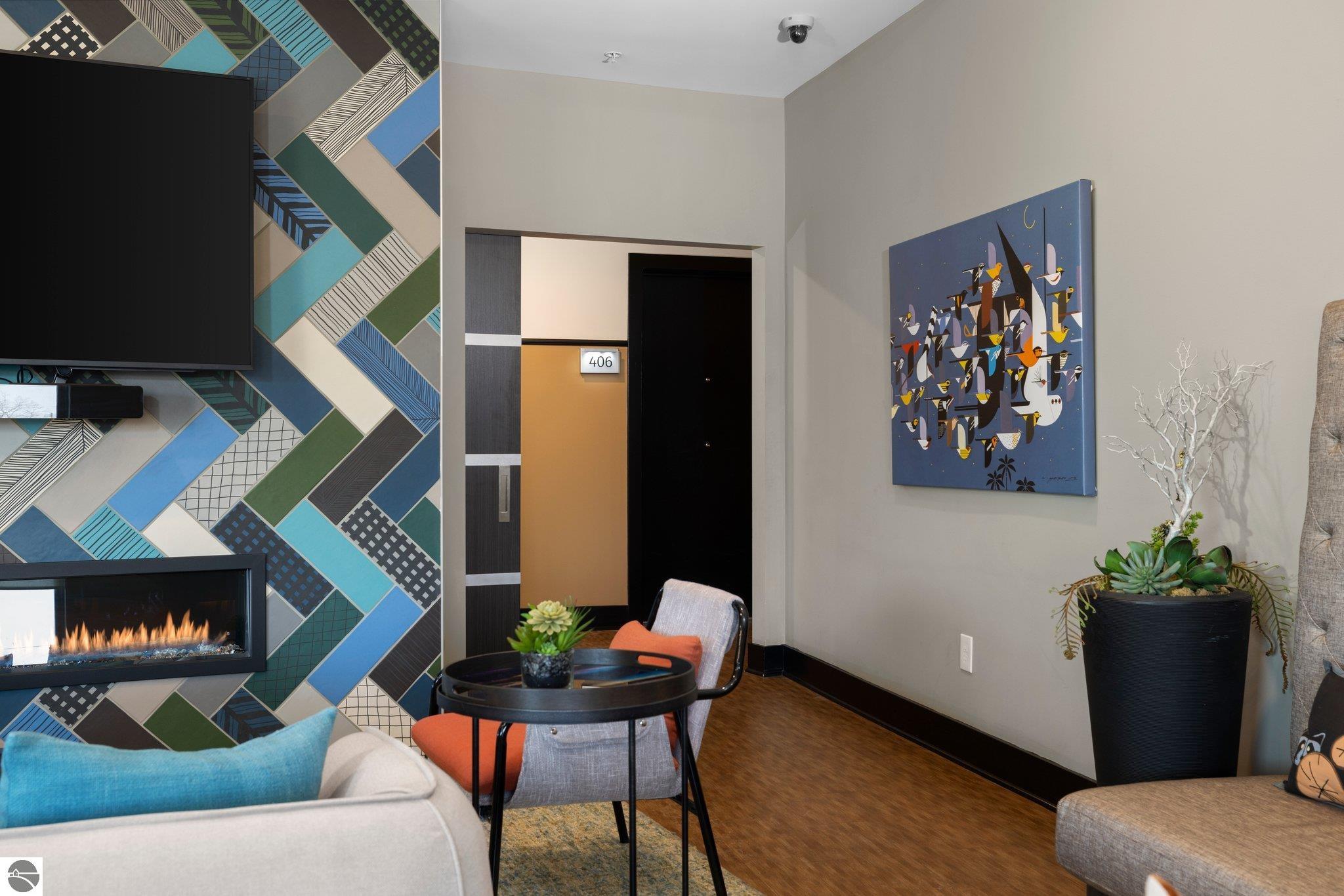 Take advantage of this excellent investment opportunity! The entire building is permitted for short-term rental, so there is no guessing about licensing. Located in Traverse City's downtown, Trailside 45 is a friendly and convenient condominium community. It's adjacent to the TART trail, which allows pedestrian and bicycle access. There is an oversized bike locker room located on each floor. There is also a shared space for larger gatherings. This unit has quartz countertops in the kitchen and bath. Additional amenities include high-efficiency appliances, forced air, central air, electric water heater, refrigerator/freezer, oven/range, disposal, dishwasher, microwave, washer, dryer, keyed entry, no steps, wide hallways, elevator access to the residence, a private covered balcony with westerly facing views, washer/dryer, window coverings, and built-in closet organization. Association dues are $350.00 monthly, including most utility costs, such as water/sewer, heat, trash removal, snow removal, cable TV, and cable internet. Fees include all exterior maintenance, snow removal, lawn care, landscaping, liability insurance, and fire insurance. Electricity is through the City of Traverse City. It usually costs $35-41 per month, depending on usage. Per HOA, pets are permitted--a maximum of up to two medium-sized dogs. Try easy living with no outdoor maintenance (but the balcony is lovely to enjoy). The elevator makes top-floor living a breeze!