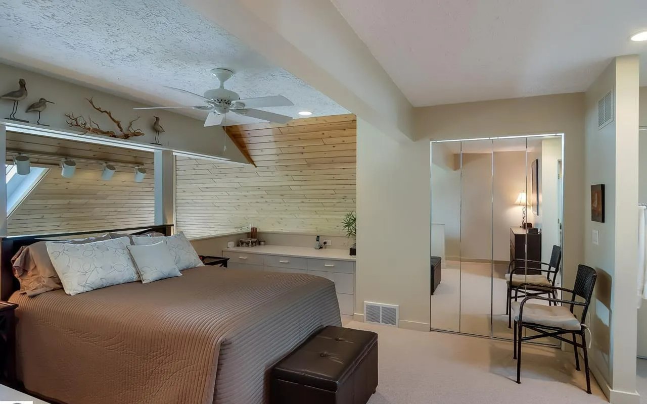 WATERFRONT SUTTONS BAY YACHT CLUB CONDOMINIUM with amazing panoramic views of the bay! This well maintained, light and bright open floor plan, 3 bedroom, 3 full bath beachfront condo offers expansive water views from every room, gorgeous T&G wood vaulted ceiling, newer skylights, beautiful floor to ceiling stone natural gas fireplace, Corian kitchen countertops, A/C, whirlpool tub and private garage. Two bedrooms have full ensuite baths! Huge 8’ tall patio door opens up onto a generous size composite deck with new glass railing...a great place to watch the sunrise and all of the activity out on the water. This community offers 1200 ft of bay frontage with spectacular large sandy beach, pool, activity building and tennis courts. Just a short walk to the Village of Suttons Bay restaurants, theater, shops and more! Suttons Bay Yacht Club condos do not come on the market often!
