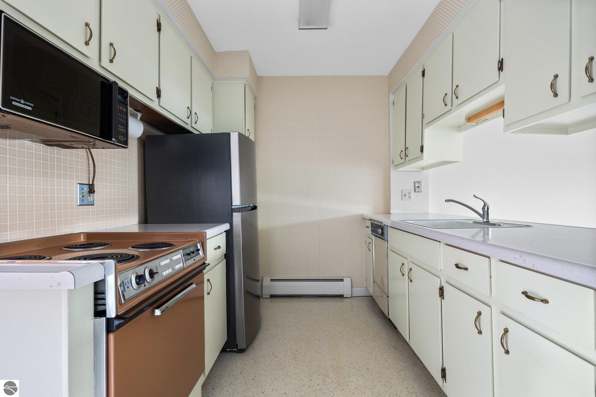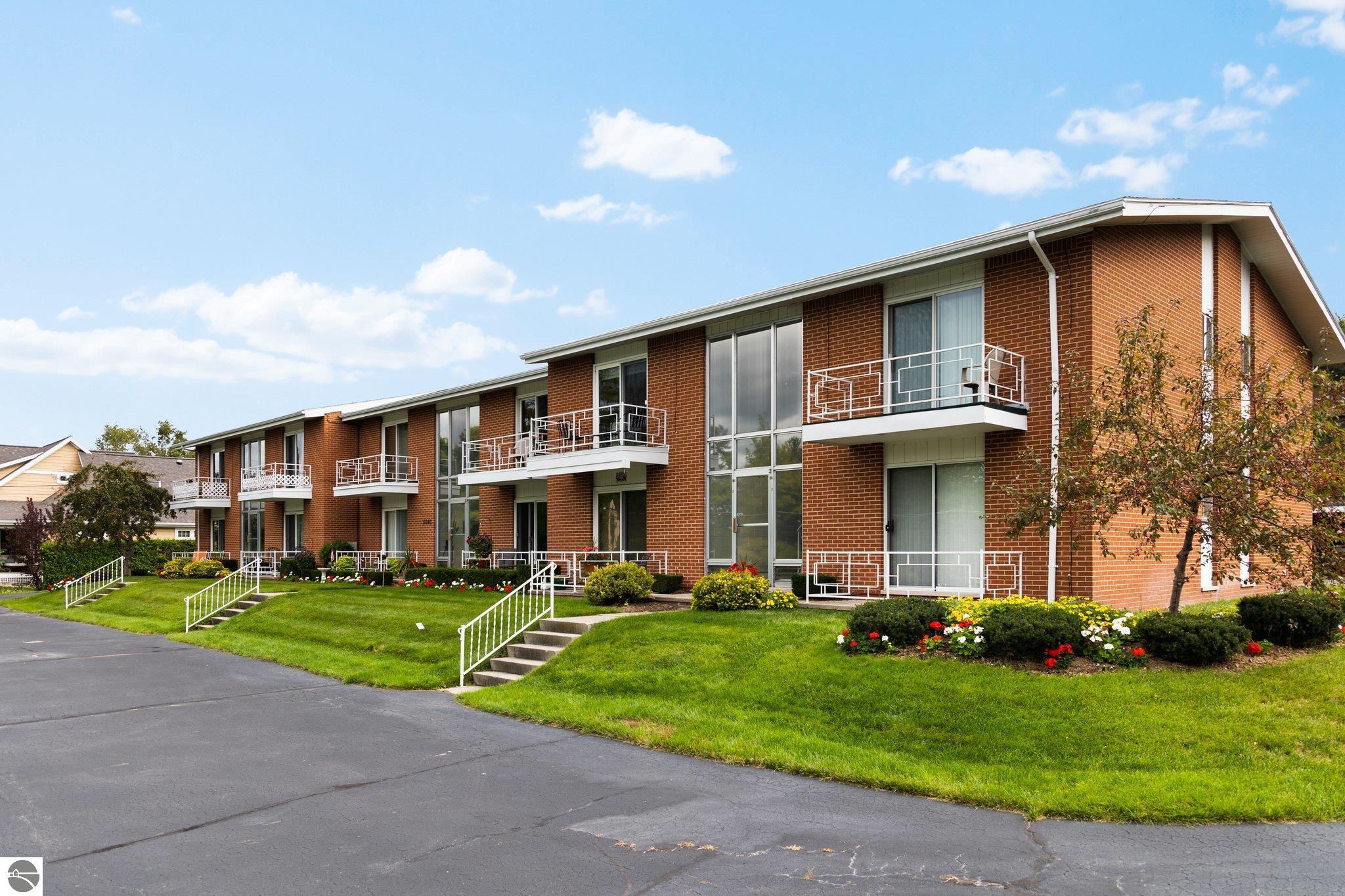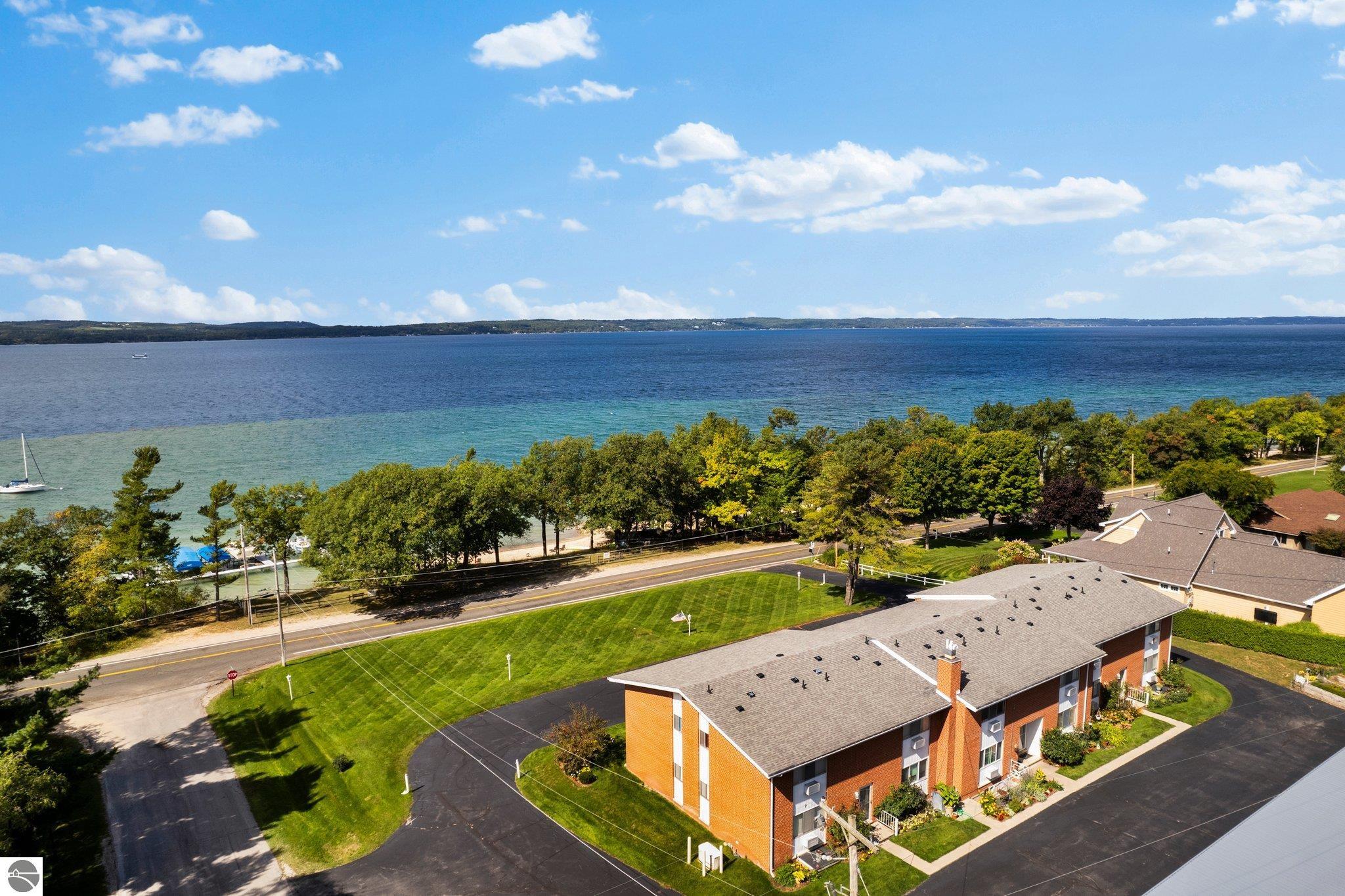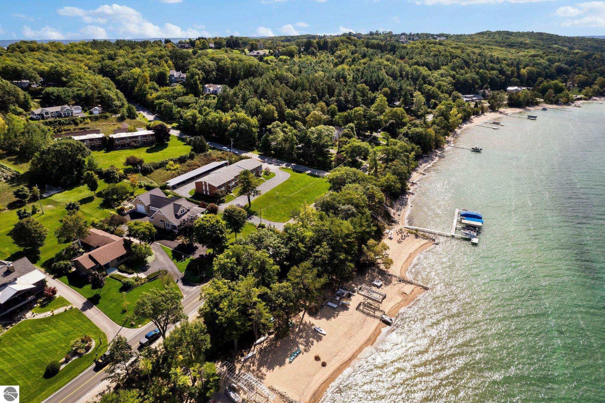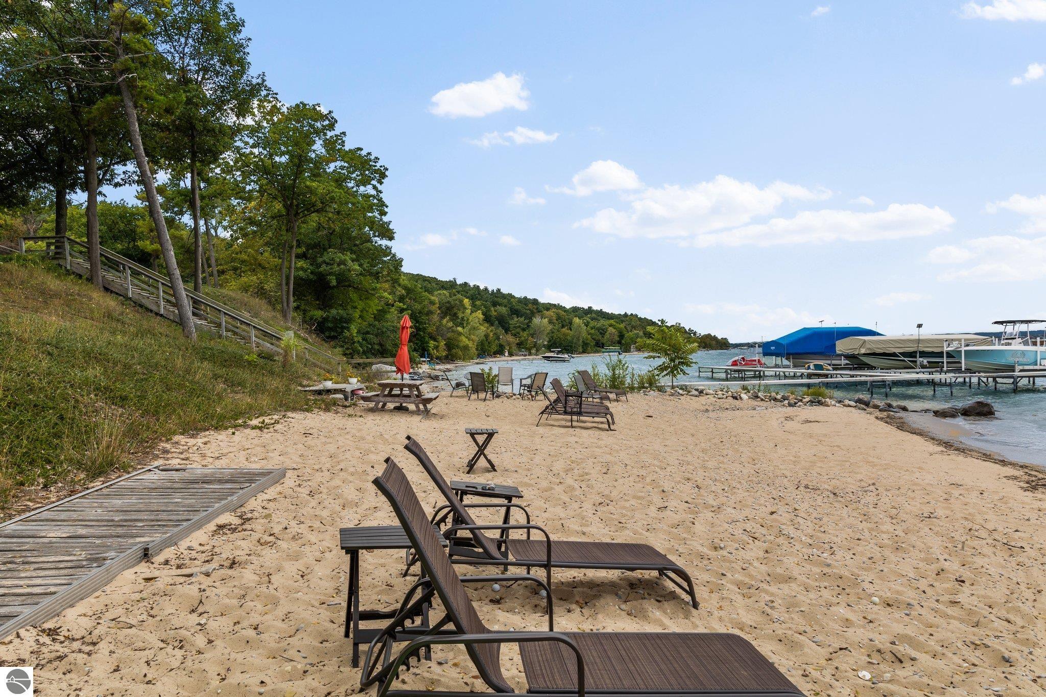 Rarely available and highly coveted Peninsula Park on Old Mission. This upper 1B/1B unit enjoys sunset views from your elevated balcony. Overlook a large, grassy lawn that walks out to a gorgeous beach with 260 feet of frontage. The beach is shared with 12 units in Co-op, 8 Units in Peninsula Hills Townhomes, and six private homes; Boats can be moored. Kayaks and paddle boards may be kept at the beach. Dock privileges s are not guaranteed. Free community laundry is shared in the basement. Includes designated carport and storage 6.5 X 5.5 locker. The $430 monthly association fee covers snow removal, lawn care, gardening, beach maintenance, water, sewer, internet, heat, insurance, taxes, trash removal, and all exterior building care. Pets must have board approval. Owners can't have short-term or long-term rentals at all. Owners can have short-term guests (less than 50 days) without Board approval. Long-term guests (more than 50 days) must be approved by the Board. CASH or 1031 ONLY! NO SIGN... An Occupancy Application must accompany an offer, see associated documents for the application.
