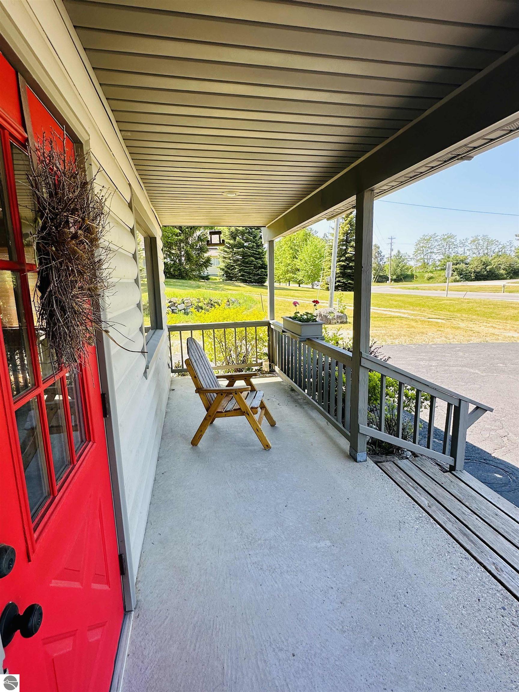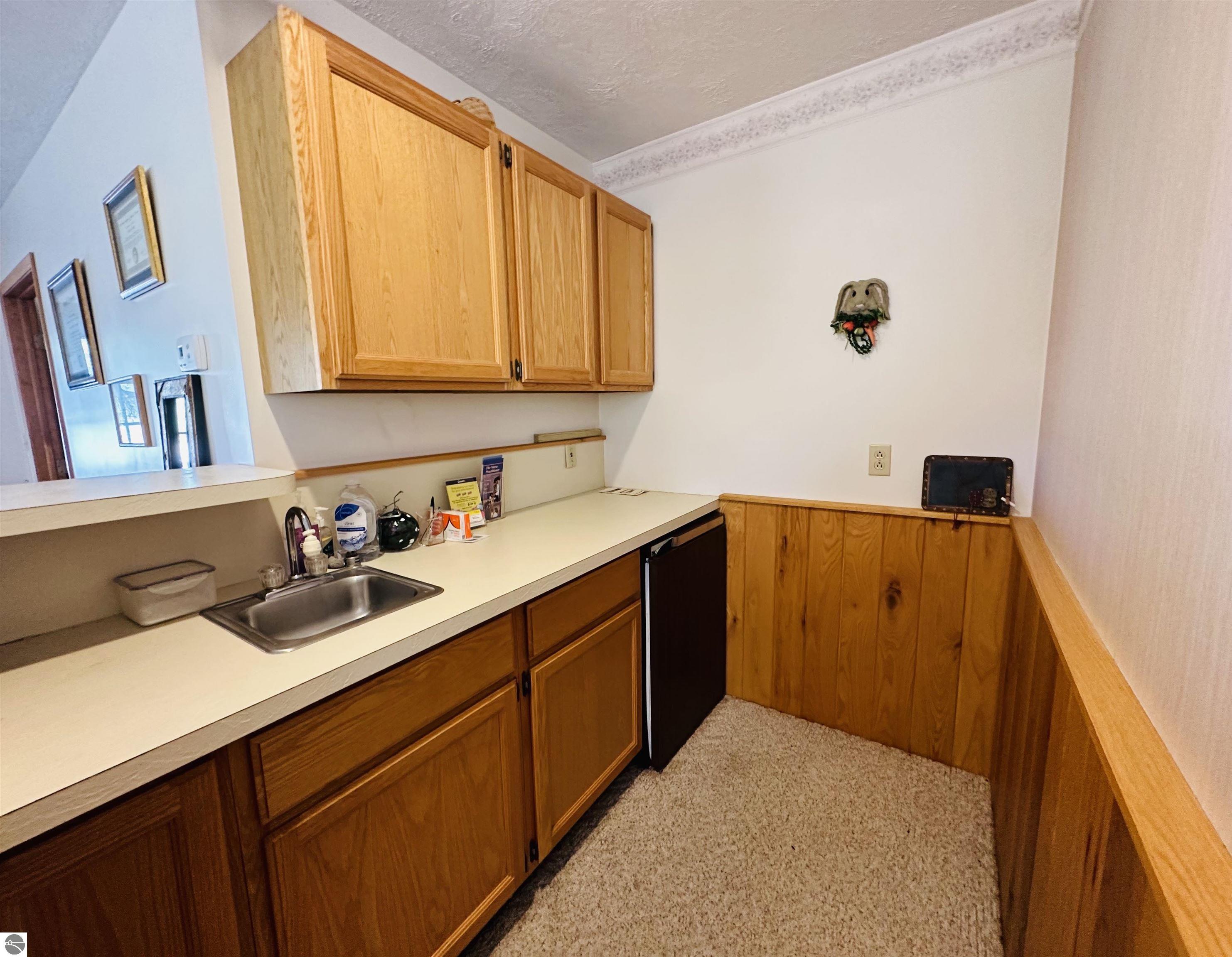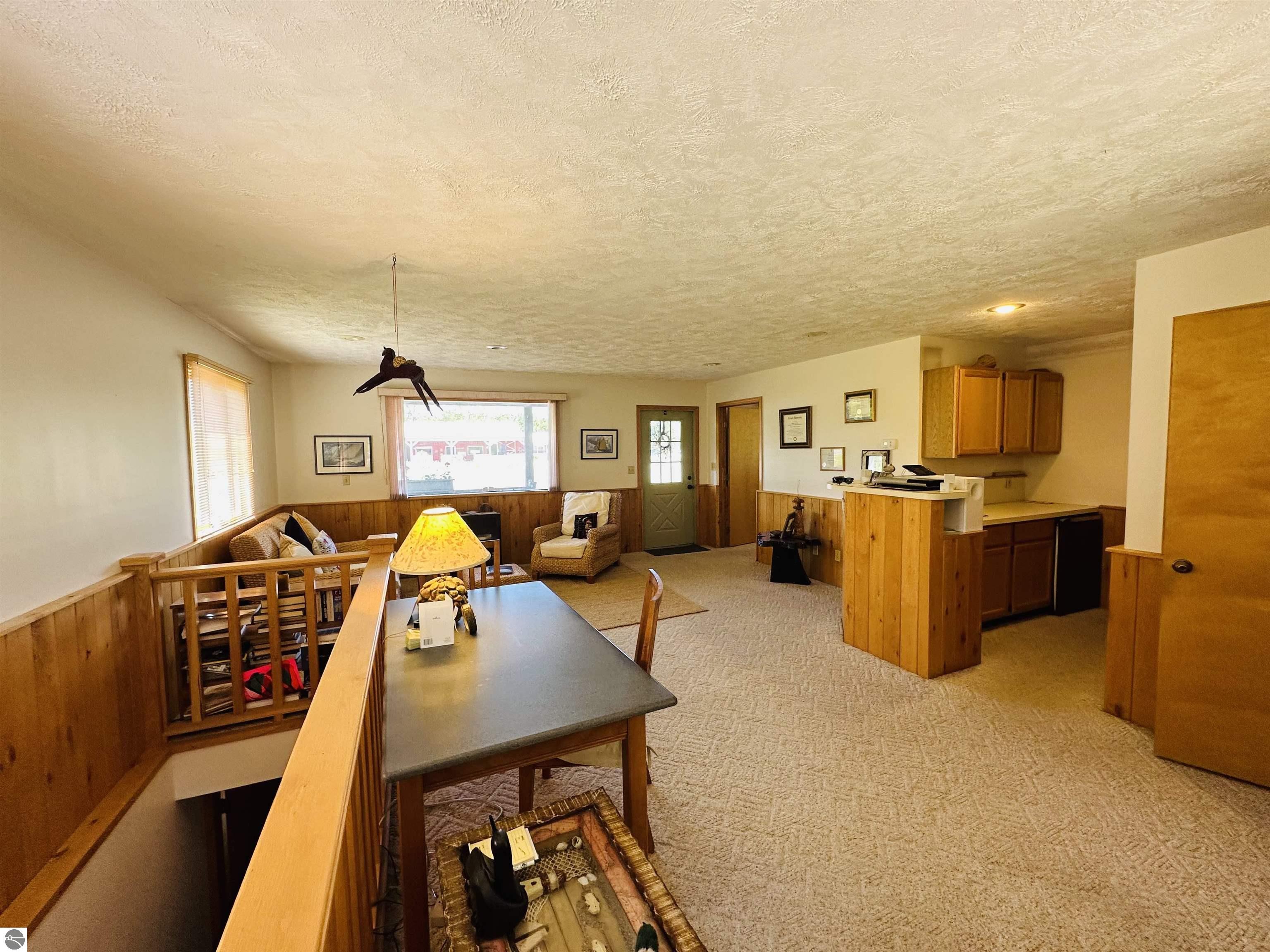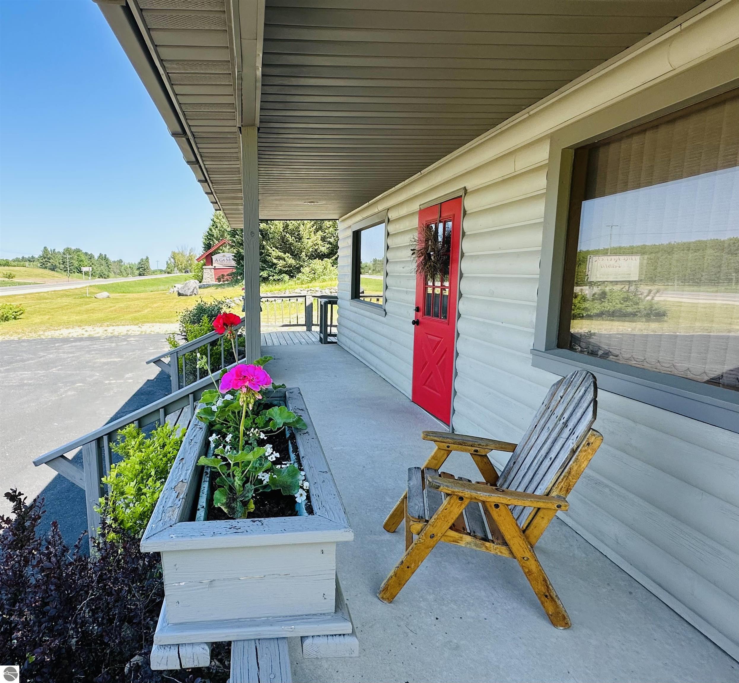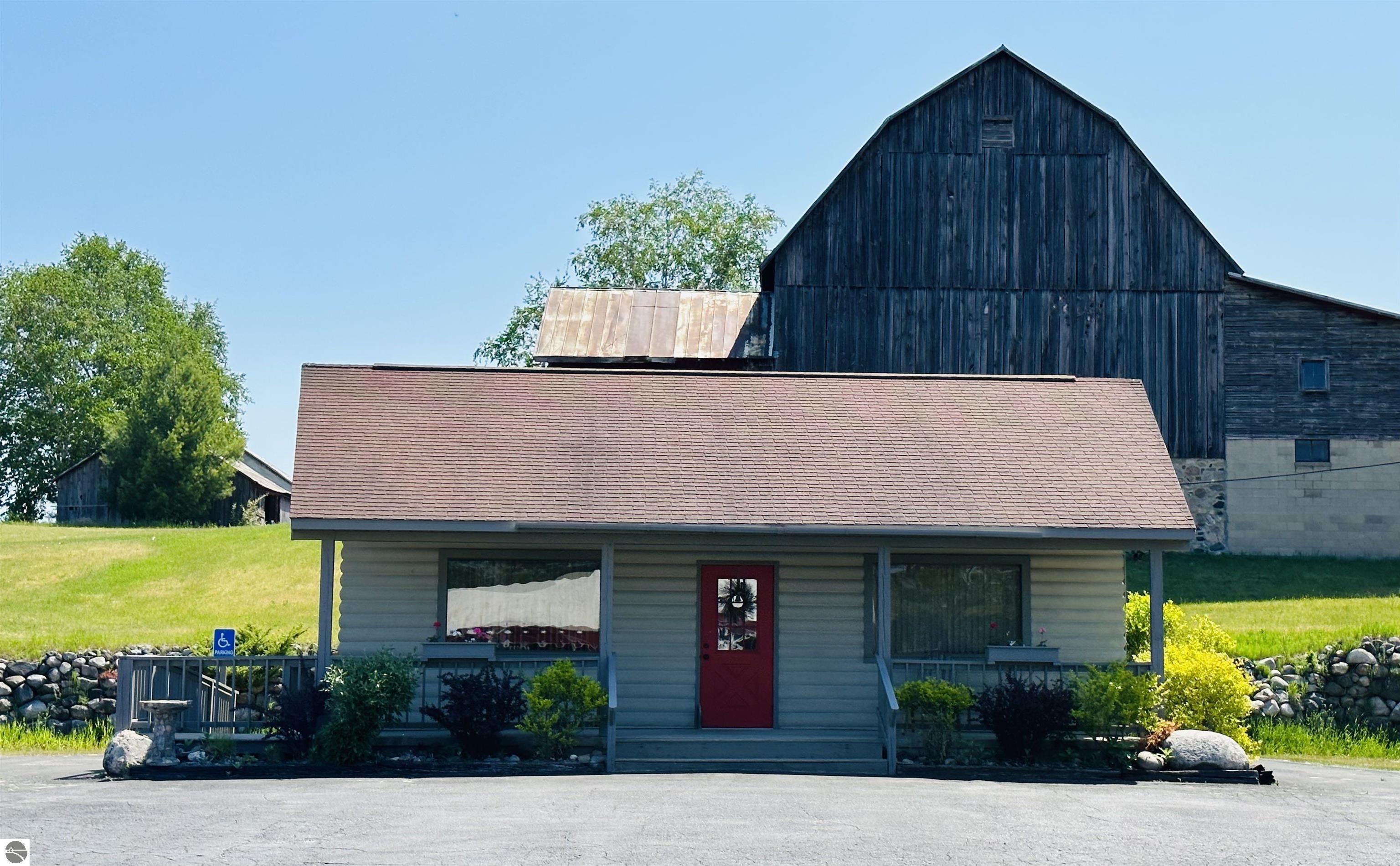 Available NOW!!! Located on US 31, just 9 miles north of Elk Rapids, this commercial building offers an excellent opportunity for your business to lease. The property, built in 1992, boasts 207 feet of frontage on US 31, with a depth of 191 feet, sitting on approximately 0.91 acres of land. A full blacktop driveway and parking area with curbing at the road provide convenient access for your customers. The building itself is 32x24 feet with a finished square footage of 768 sq. ft. on the main level and features an attractive log-faced ranch design. The main floor consists of two large office rooms, a kitchen area, and a bathroom, all carpeted for a professional and comfortable environment. The bathroom is built to code for handicap accessibility. Additionally, a handicap ramp runs along the north side of the building, ensuring easy access for all visitors. If you require additional space, the property offers a full, dry basement provides ample storage but could also be converted into more office rooms. Furthermore, the basement features a sprinkler system for fire safety, meeting all necessary requirements. The building boasts several desirable features, including insulated wood windows, R-4.5 insulated sheathing under 1/2 log, maintenance-free aluminum soffits and trim, and Tyvek house wrap. The interior showcases oak cabinets in the office room, kitchen area, and bathroom, along with oak wainscoting on the walls and textured ceilings. Birch doors and oak trim add a touch of elegance to the space. Don't miss this opportunity to lease this well-maintained commercial building in a prime location near the 45th parallel!