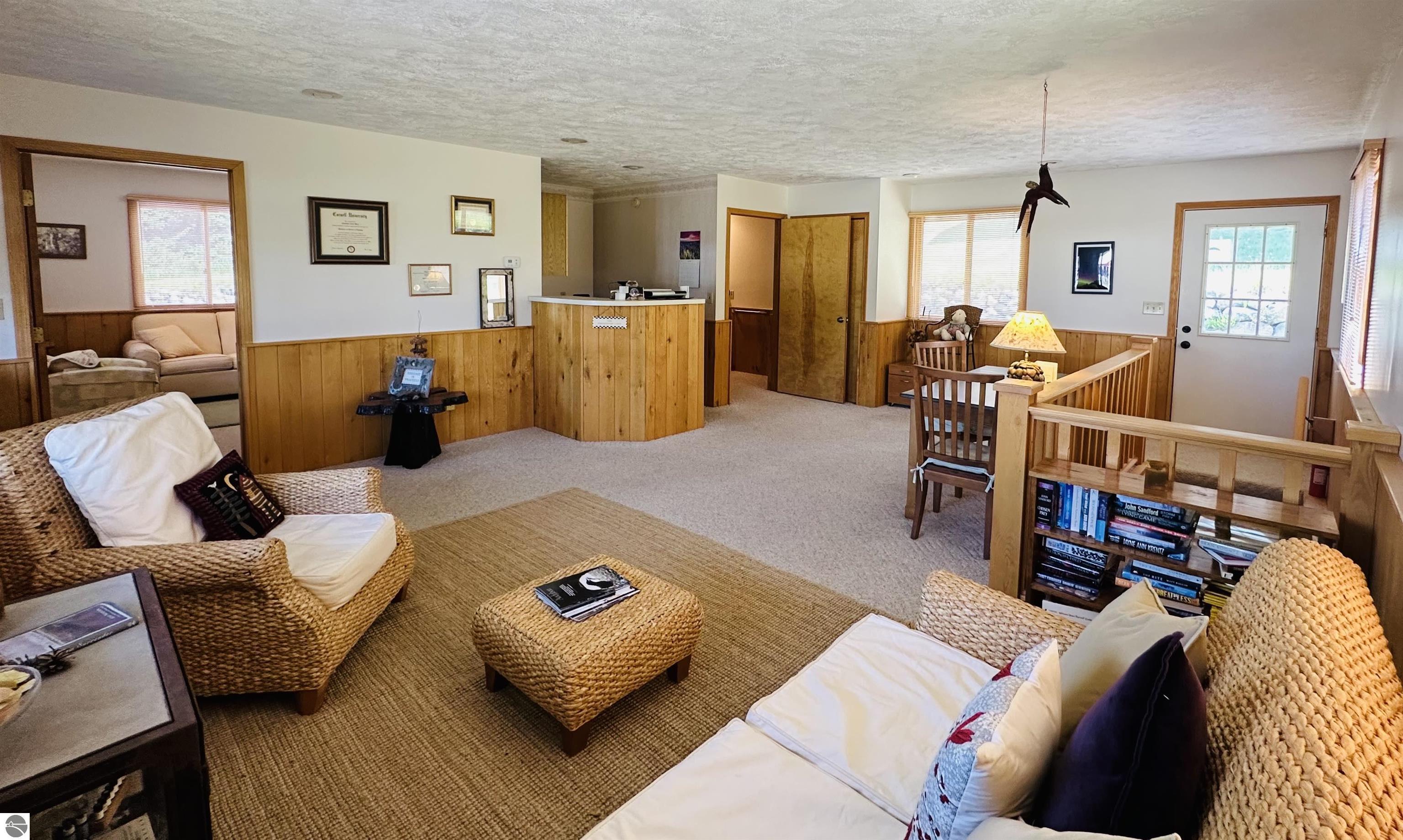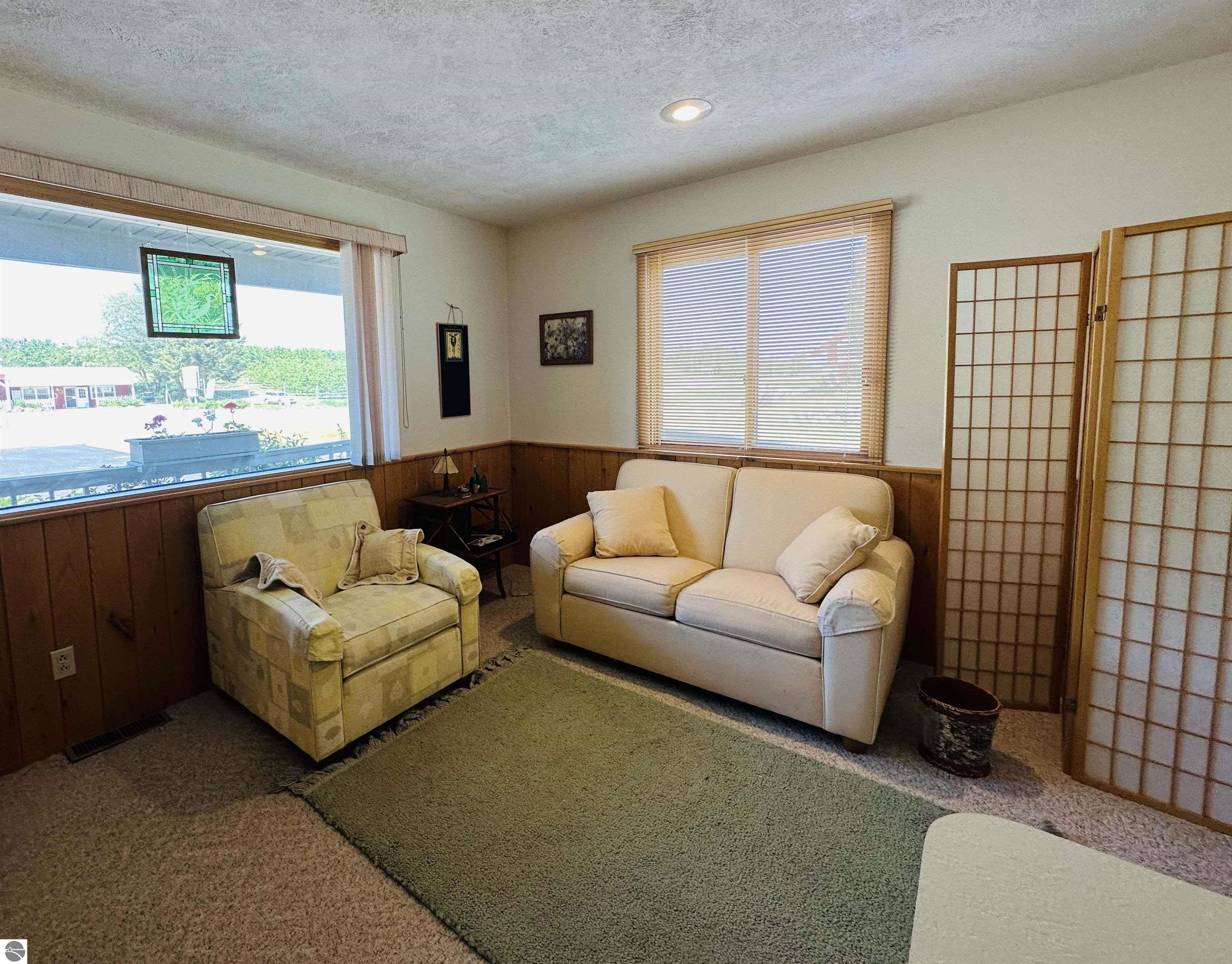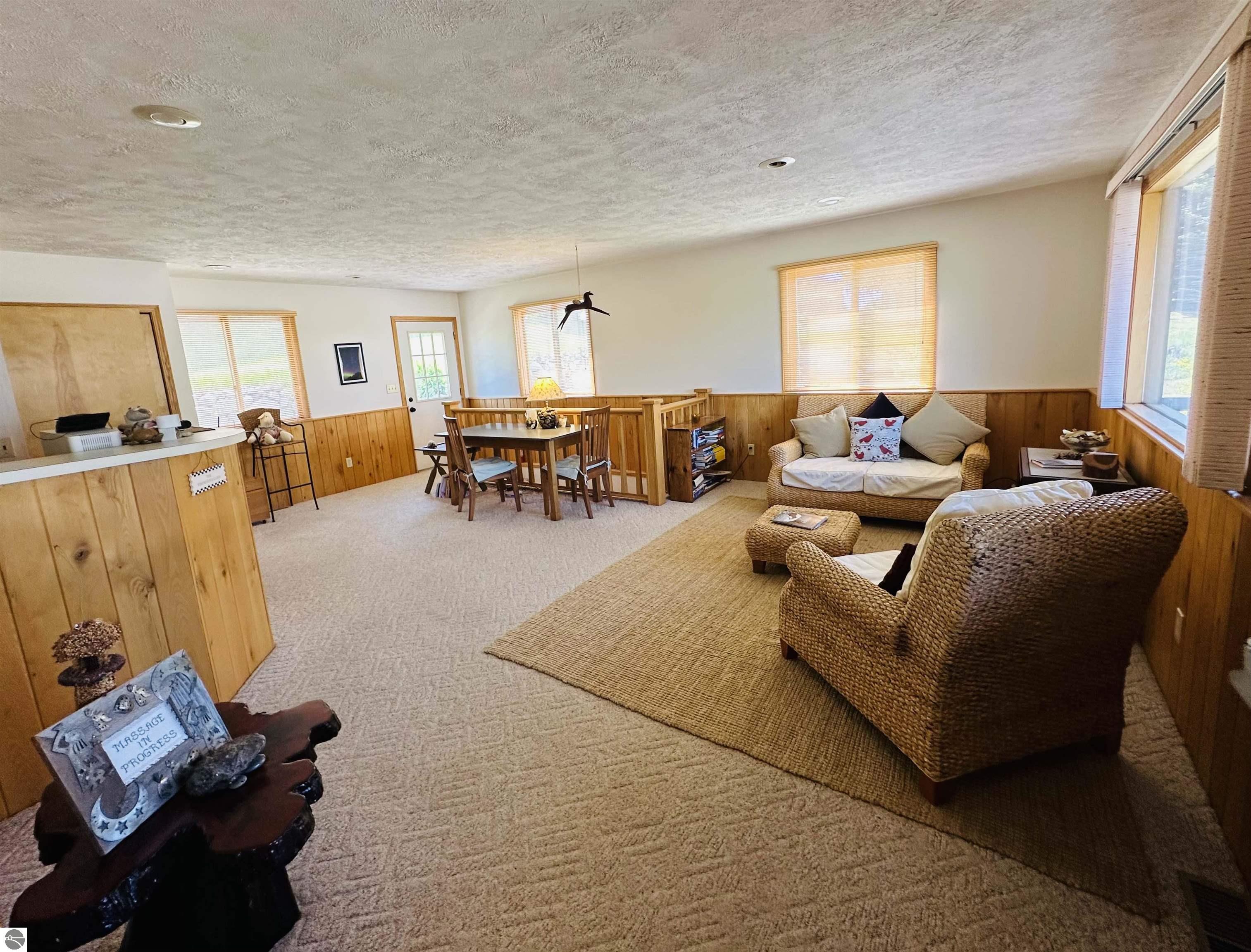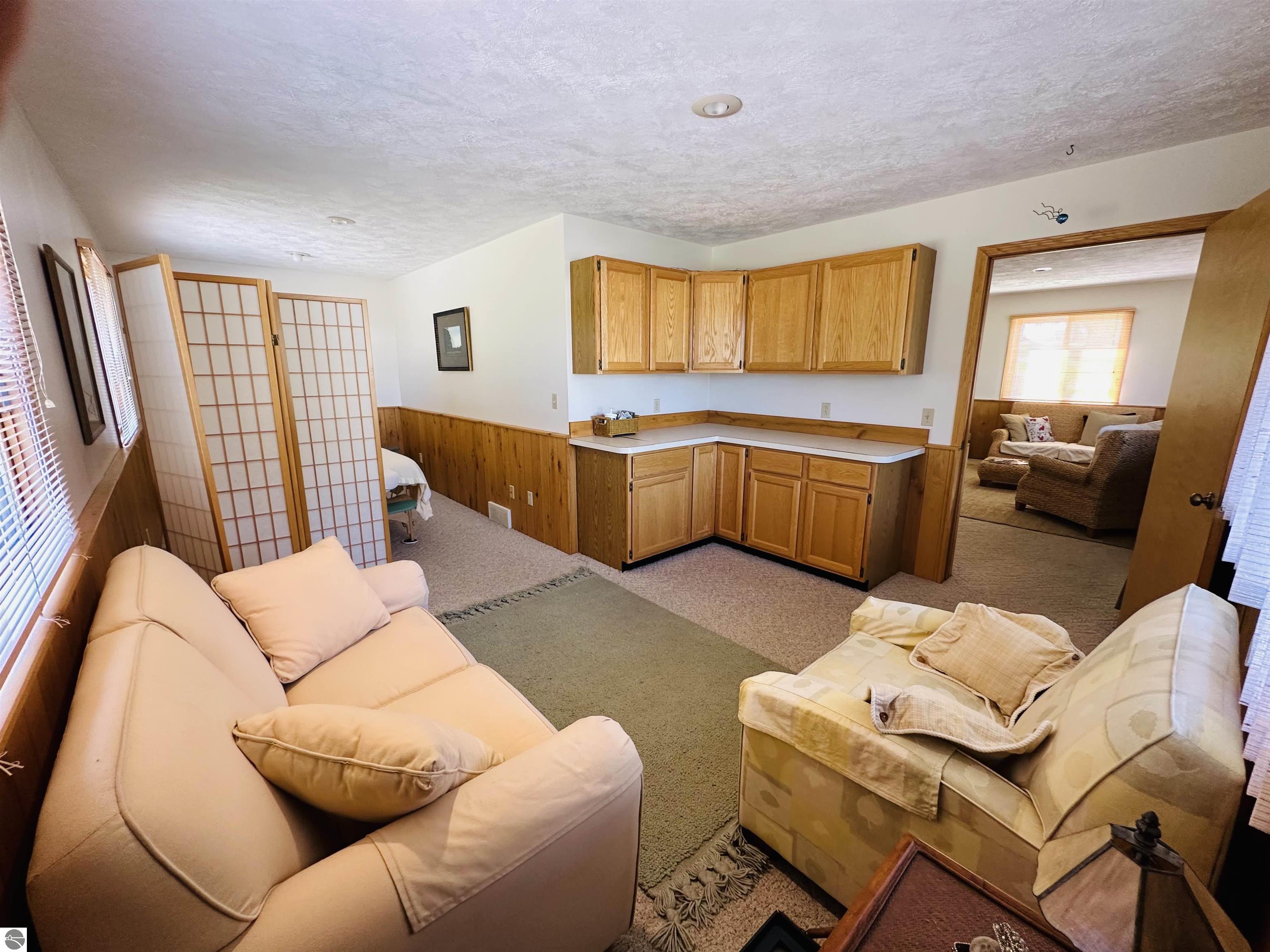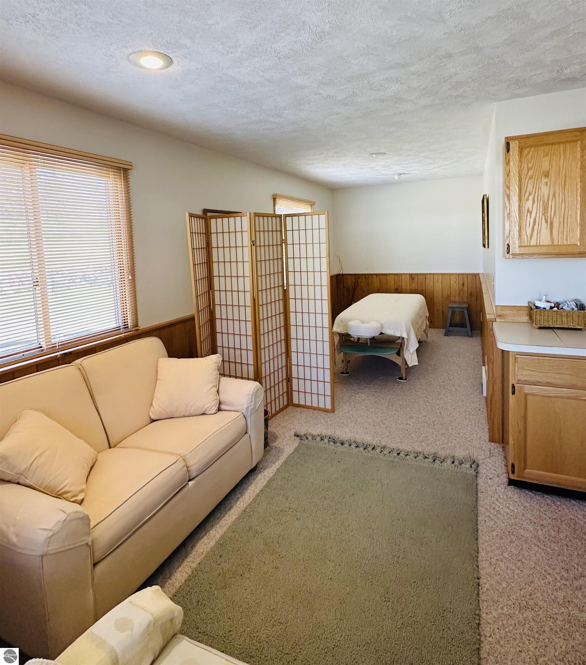 Available NOW!!! Located on US 31, just 9 miles north of Elk Rapids, this commercial building offers an excellent opportunity for your business to lease. The property, built in 1992, boasts 207 feet of frontage on US 31, with a depth of 191 feet, sitting on approximately 0.91 acres of land. A full blacktop driveway and parking area with curbing at the road provide convenient access for your customers. The building itself is 32x24 feet with a finished square footage of 768 sq. ft. on the main level and features an attractive log-faced ranch design. The main floor consists of two large office rooms, a kitchen area, and a bathroom, all carpeted for a professional and comfortable environment. The bathroom is built to code for handicap accessibility. Additionally, a handicap ramp runs along the north side of the building, ensuring easy access for all visitors. If you require additional space, the property offers a full, dry basement provides ample storage but could also be converted into more office rooms. Furthermore, the basement features a sprinkler system for fire safety, meeting all necessary requirements. The building boasts several desirable features, including insulated wood windows, R-4.5 insulated sheathing under 1/2 log, maintenance-free aluminum soffits and trim, and Tyvek house wrap. The interior showcases oak cabinets in the office room, kitchen area, and bathroom, along with oak wainscoting on the walls and textured ceilings. Birch doors and oak trim add a touch of elegance to the space. Don't miss this opportunity to lease this well-maintained commercial building in a prime location near the 45th parallel!